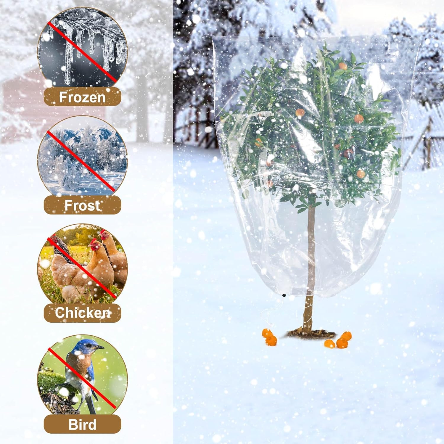 - [Large Size] Each plastic plant cover measures 47.2" x 70.8" and is suitable for various large plants indoors or outdoors, such as saplings, shrubs, mango trees, potted lemons, and crops. 2 pieces come in a set, which can meet the needs of large potted plants and small trees.