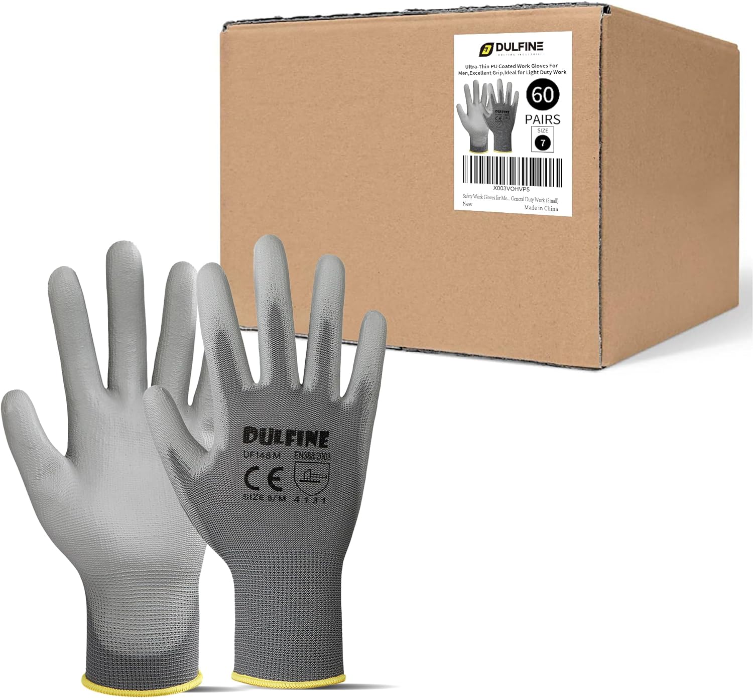 Safety Work Gloves for Men PU Coated 60 Pairs Bulk Pack,Grey Seamless Knit Glove with thin Polyurethane Coated Smooth Grip on Palm & Fingers, for Men and Women, Ideal for General Duty Work (XX-Large)