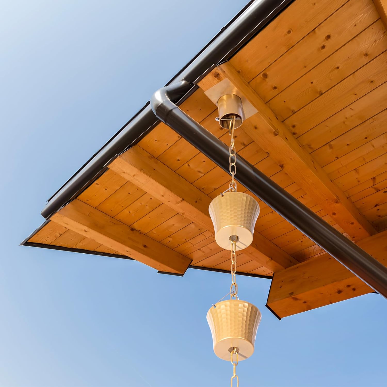 - Classic Looking Design:The standard length of the gutter rain chains is 8.5 FT. The rain chain is made of (larger size of 14 ,3.95 inch wide, 3 inch high cylindrical cups and chains) combined with each other, so beautiful that water flows down each cup on the rain chains, creating a beautiful water feature.
