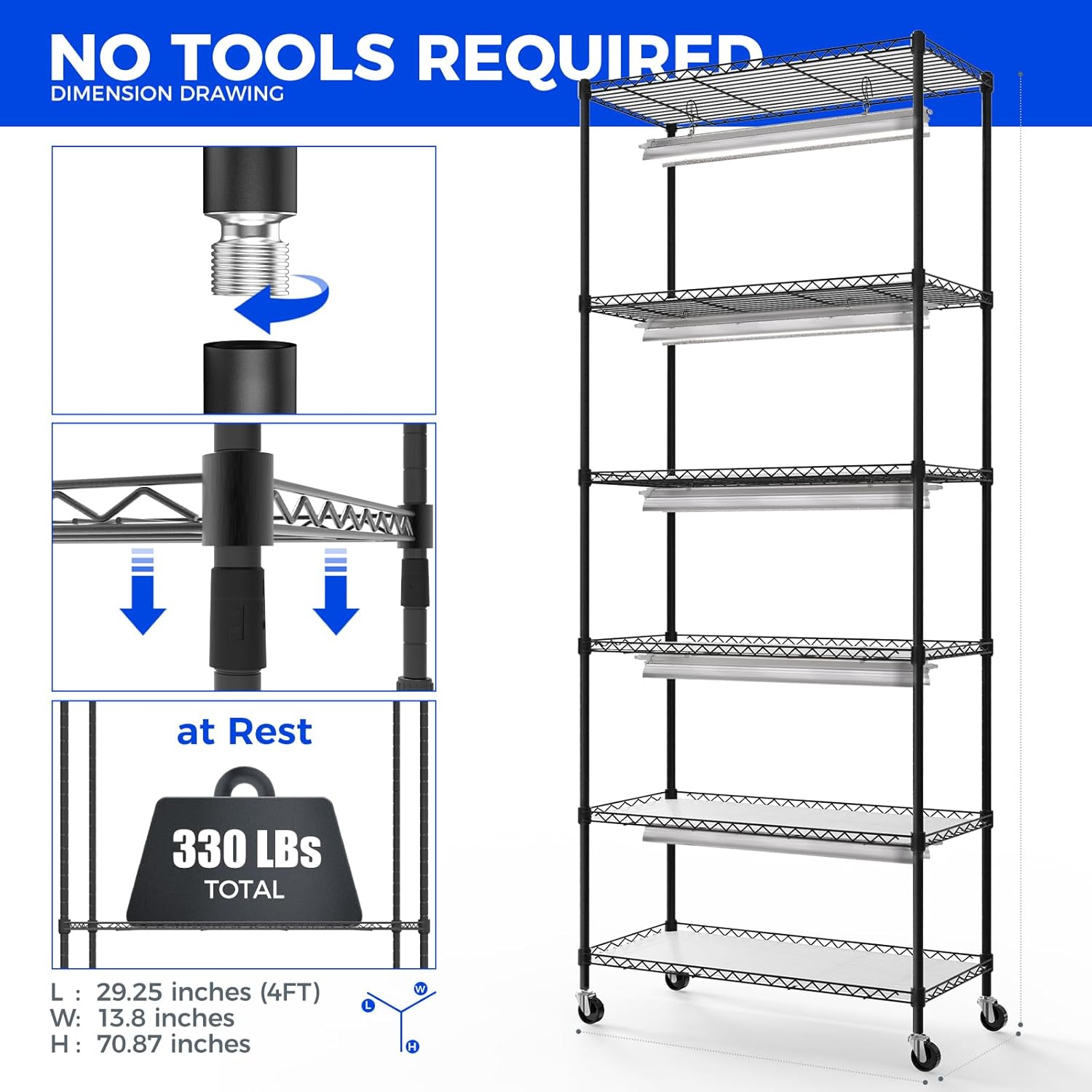 - 6-Tier Construction: The indoor plant stand features 6 adjustable-height layers, with overall dimensions of 29.5'' L x 13.8'' W x 70.9'' H and a total weight capacity of 330 lbs. It provides suitable space for your blooming flowers, sprouting plants, microgreens, and vegetables organize