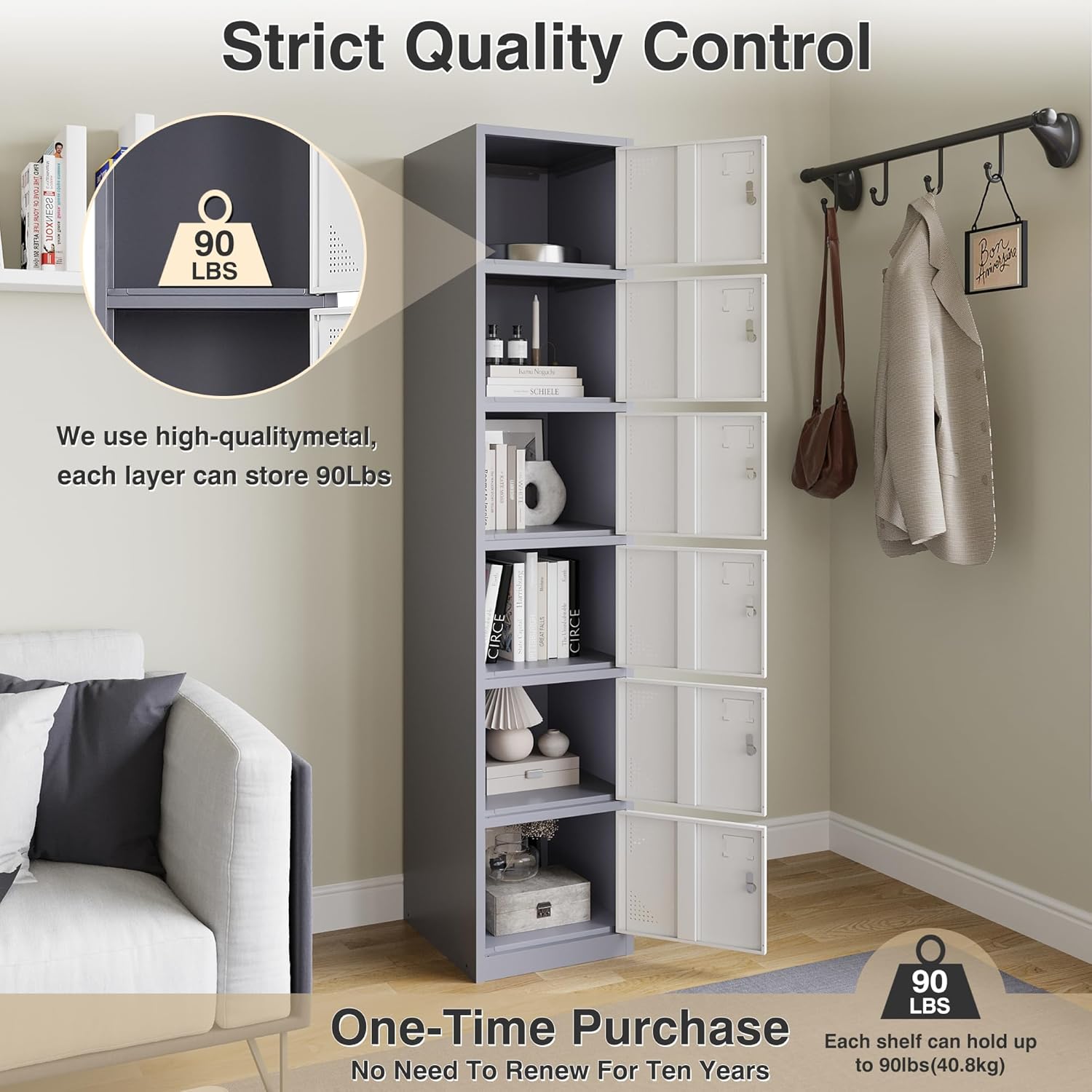 - ✔️【Multiple Scenes】: Every tier of the metal locker storage cabinet is equipped with a latch compatible with the most commonly used combination locks or padlocks. locking cabinet have a simple design can match any style.locker organizer perfect for home, office, school, gym, bedrooms, classroom, porch, dressing room, living room, study