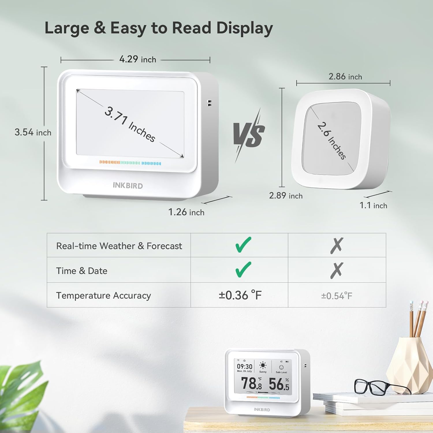 - 【WiFi Remote Monitoring】: Connect this remote temperature monitor to a 2.4GHz WiFi, you can view temp and humidity anytime anywhere on the INKBIRD app. Free data storage and export for up to 2 years.