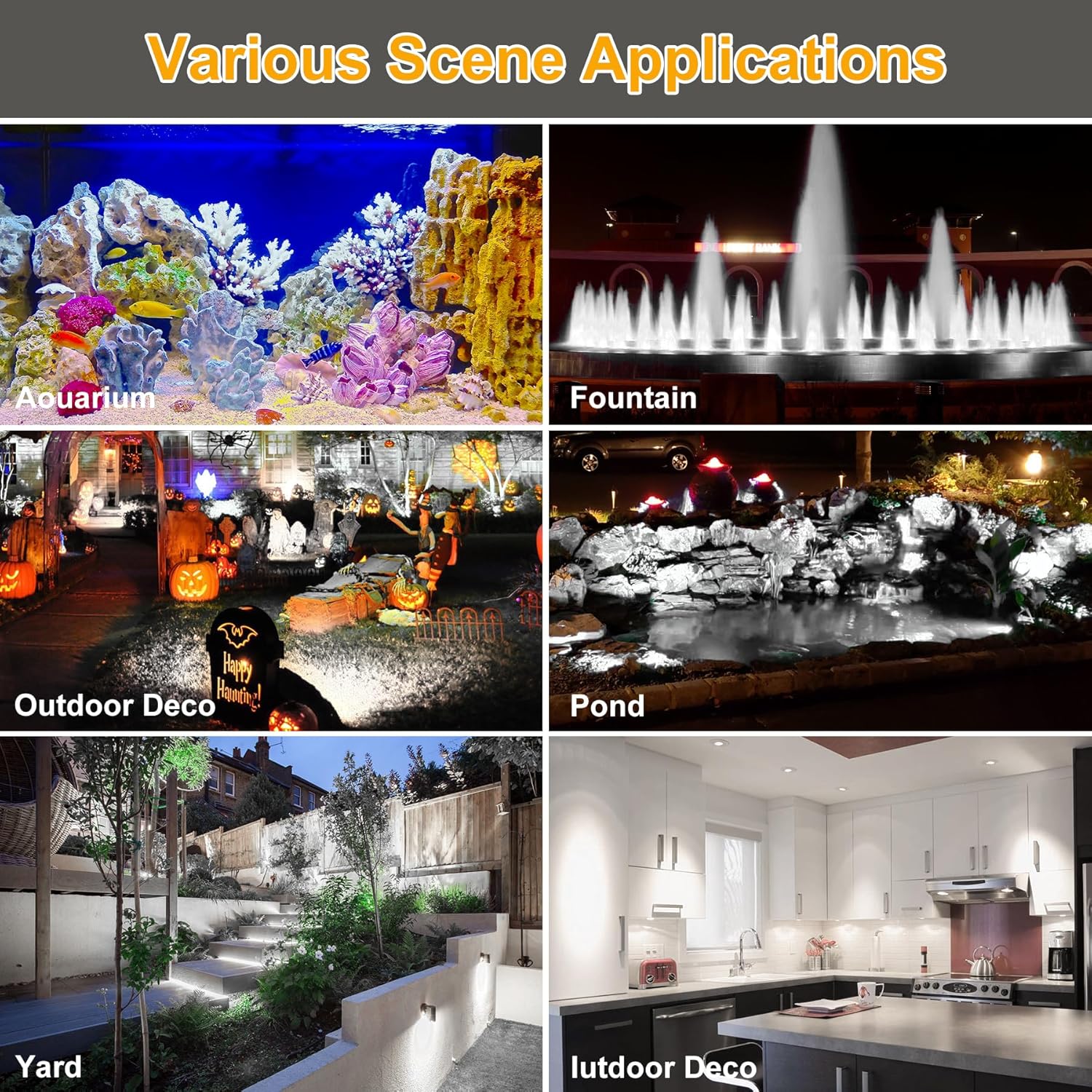 - IP68 Waterproof and Resistant to Corrosion: The led submersible lights is produced with professional dust-proof and IP68 waterproof technology, which is durable