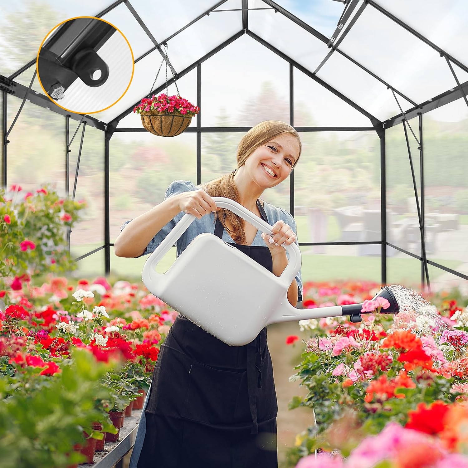- ADJUSTABLE ROOF & ROOF HOOK: This aluminum frame greenhouse features 2 roofs vent with 4 adjustable angles for getting continuously fresh air to your plants. The built-in roof hooks provide more space for hanging pots.