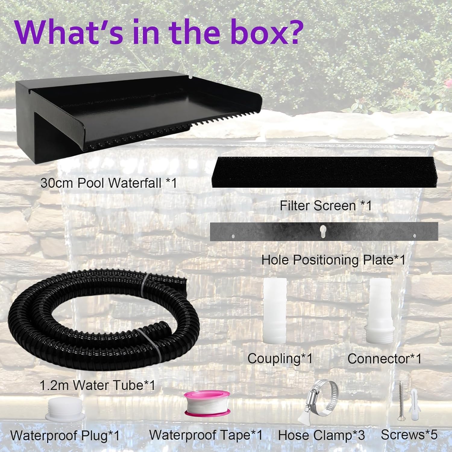 - ⏩Easy to Install Waterfall Kit⏪ Pamopamo waterfall kit is user-friendly and easy to set up. It integrates seamlessly into your pool or pond, adding a beautiful water feature without the need for complex installations.