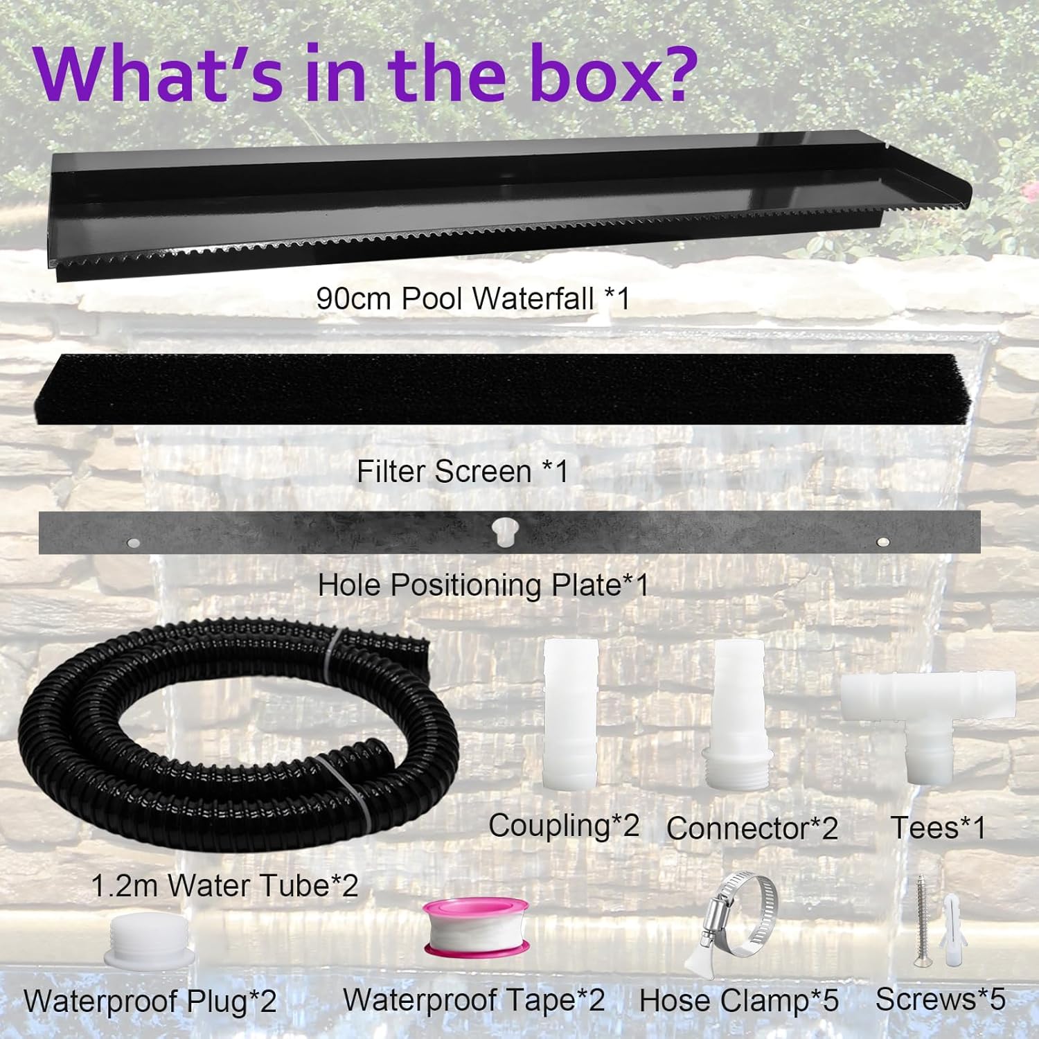 - ⏩Easy to Install Waterfall Kit⏪ Pamopamo waterfall kit is user-friendly and easy to set up. It integrates seamlessly into your pool or pond, adding a beautiful water feature without the need for complex installations.