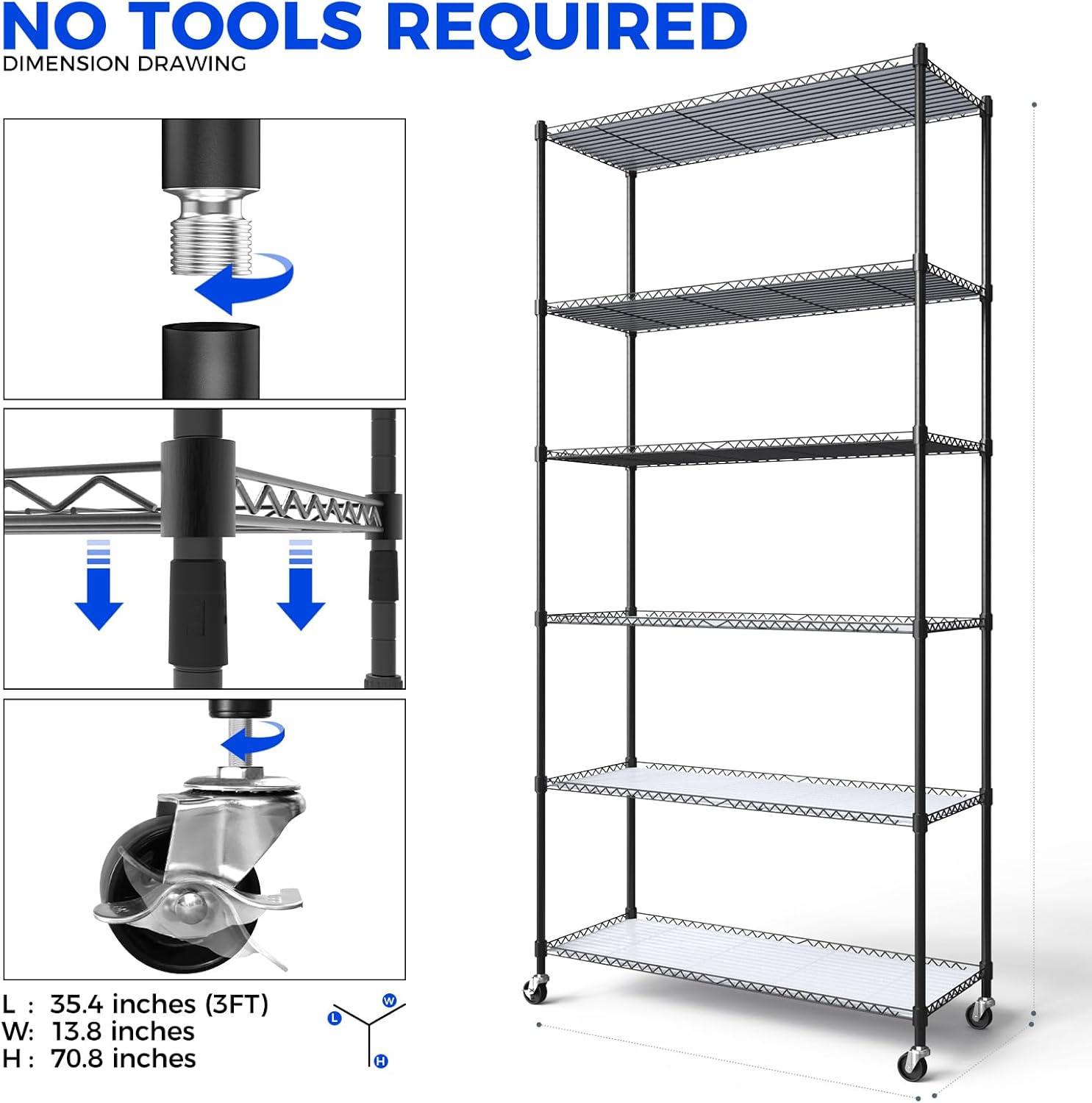- Sturdy and Safety Shelf: Standing at a height of 70.9", 6 tiers of plant stand with grow light. Each tier can hold up to 60 lbs. of planters. Total weight capacity up to 360 lbs. Each shelf holds a plant tray to grow or display houseplants. Plant stand material is metal surface sprayed with black paint