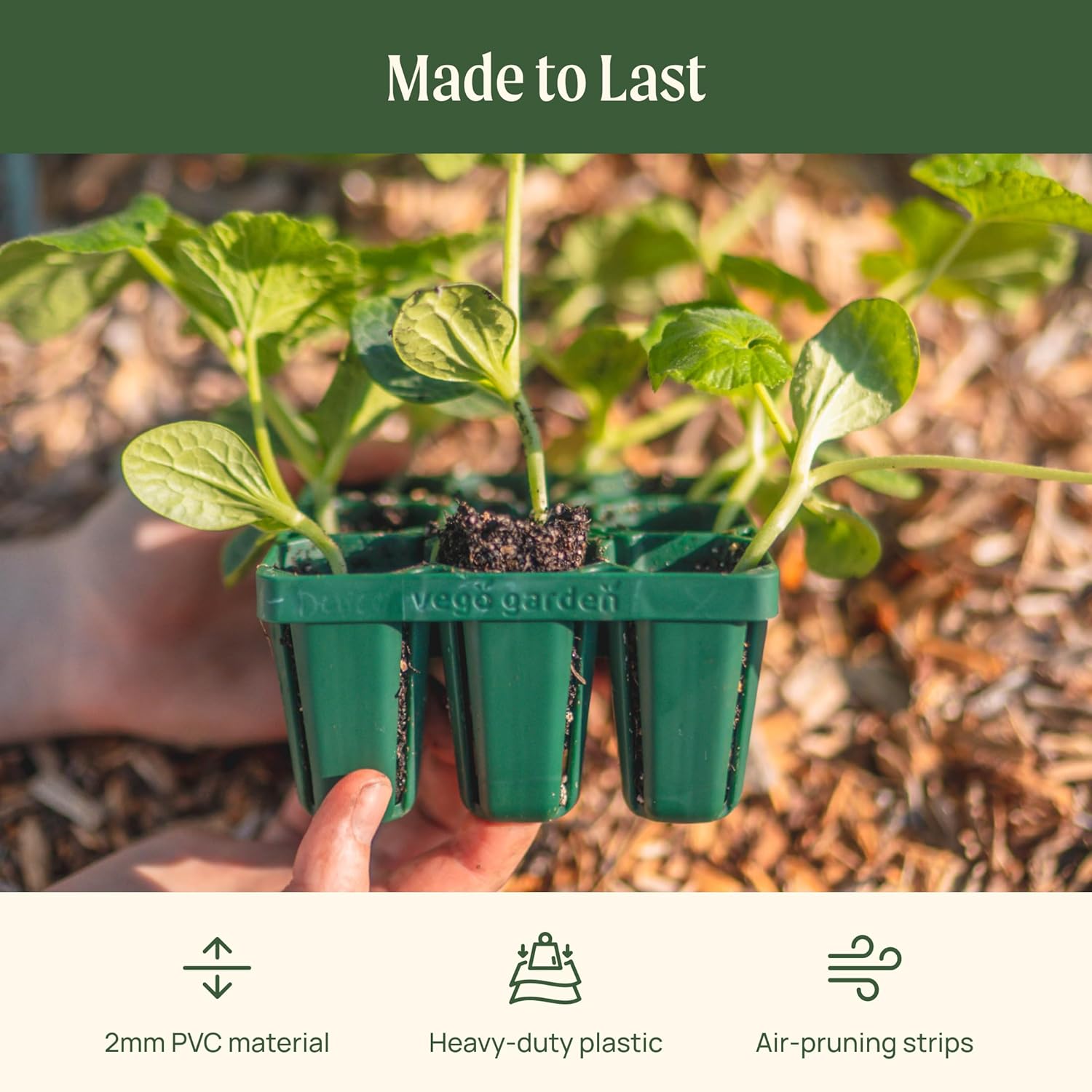 - ăMade of High-quality Thicken 2 mm MaterialăVego Garden seed trays use 2mm PVC material, stronger and not easy to deform, can be reused many times. The thickened bottom edge material that can withstand the pressure, it would not lose soil or soak up too much water, and effectively cultivate seeds