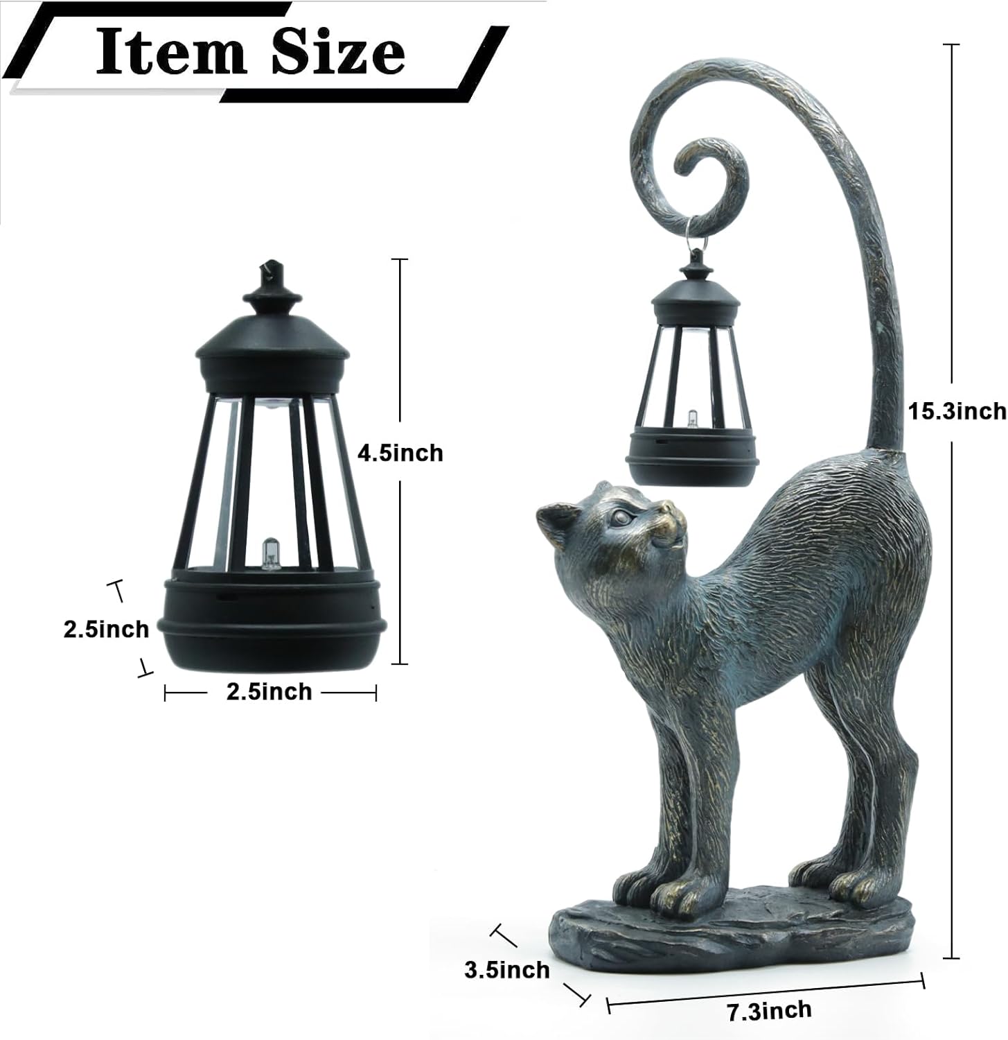 - Compact Size: Please note that this Solar cat statue is not a large sculpture. Its compact size is perfect for accentuating your space without overwhelming it. (15.3" x 7.3" x 3.5“ )