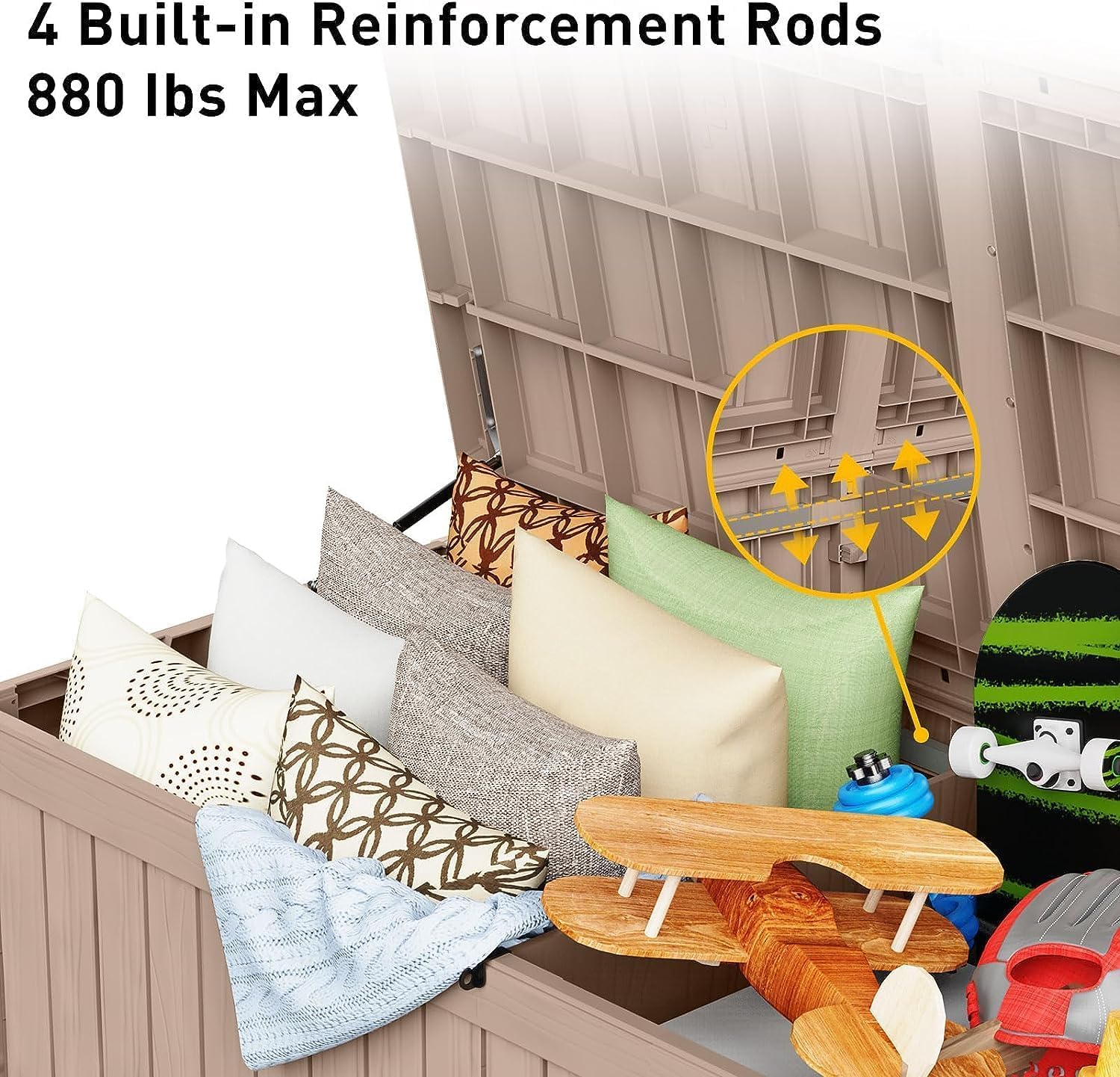 - ROBUST & STABLE CONSTRUCTION - Featuring an internally reinforced design, this deck box delivers exceptional weight-bearing capacity and durability. The thicker panels and precise assembly ensure enhanced stability, helping maintain its shape over time.