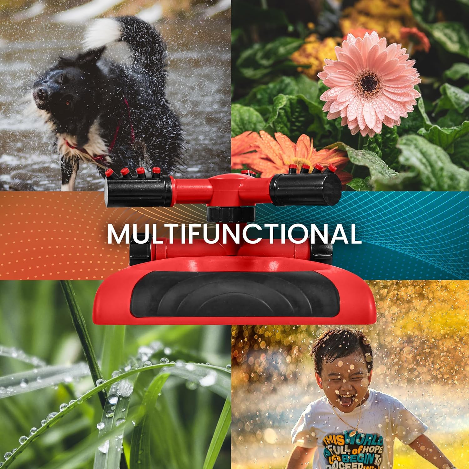 Joeys Sprinkler for Yard, Rotating Garden Sprinkler for Large Area Coverage, Lawn and Yard Sprinklers (Red)