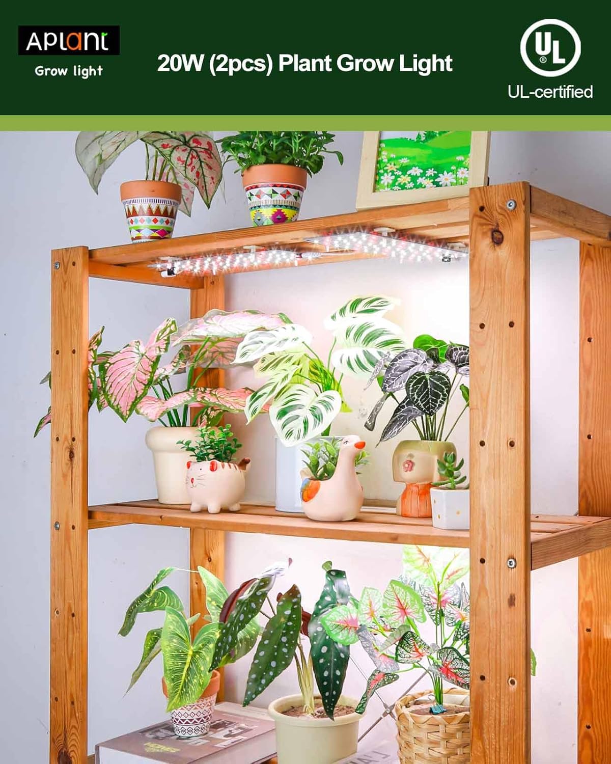 - Flexible Installation: APLANT grow lights for indoor plants come with stickers and cables for easy attachment to shelves; Two plant grow lights indoor can be connected with a 70-inch extension cord, perfect for bookshelves, cabinets, glass greenhouses, etc