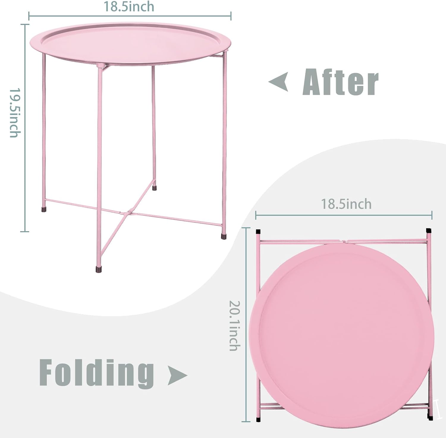 Garden 4 you End Table Outdoor Side Table, Small Patio Table Metal Side Table, Round Folding Side Table, for Outdoor and Living Room,Pink