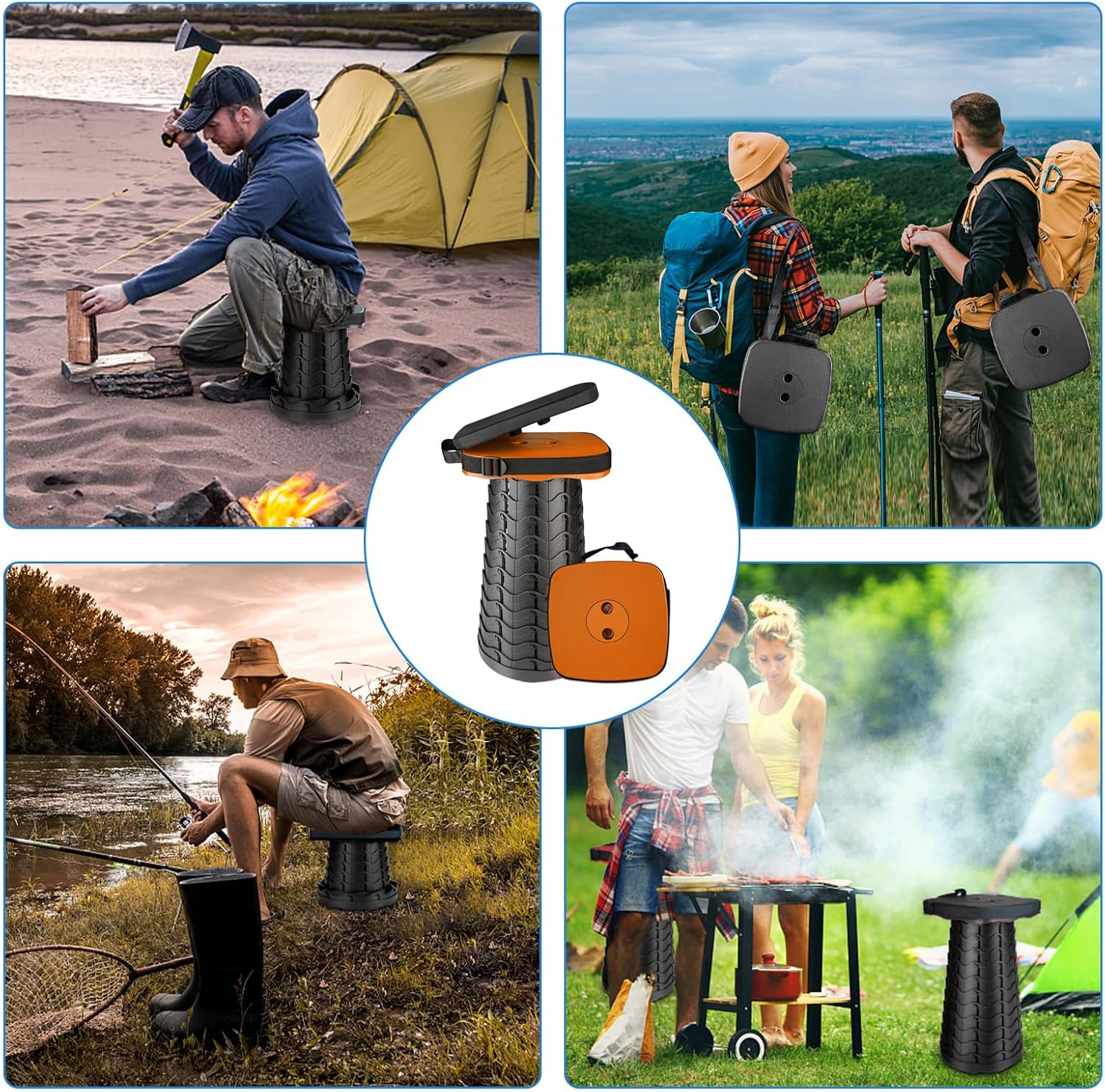 - ăSAFE & STEADYă- Our retractable stool is made of high strength eco-friendly engineering plastics material, the retractable folding stool has a strong bearing capacity and it can hold up to 485lbs in dynamic and 579lbs in static, which will meet your needs effortless. The folding stool has 120 tight connecting clasps and non-slip bottom, so you can sit it on safely. the perfect and smooth curve can be seen directly, the unique smooth feeling of opening and closing, and the perfect combination of firm locking way.