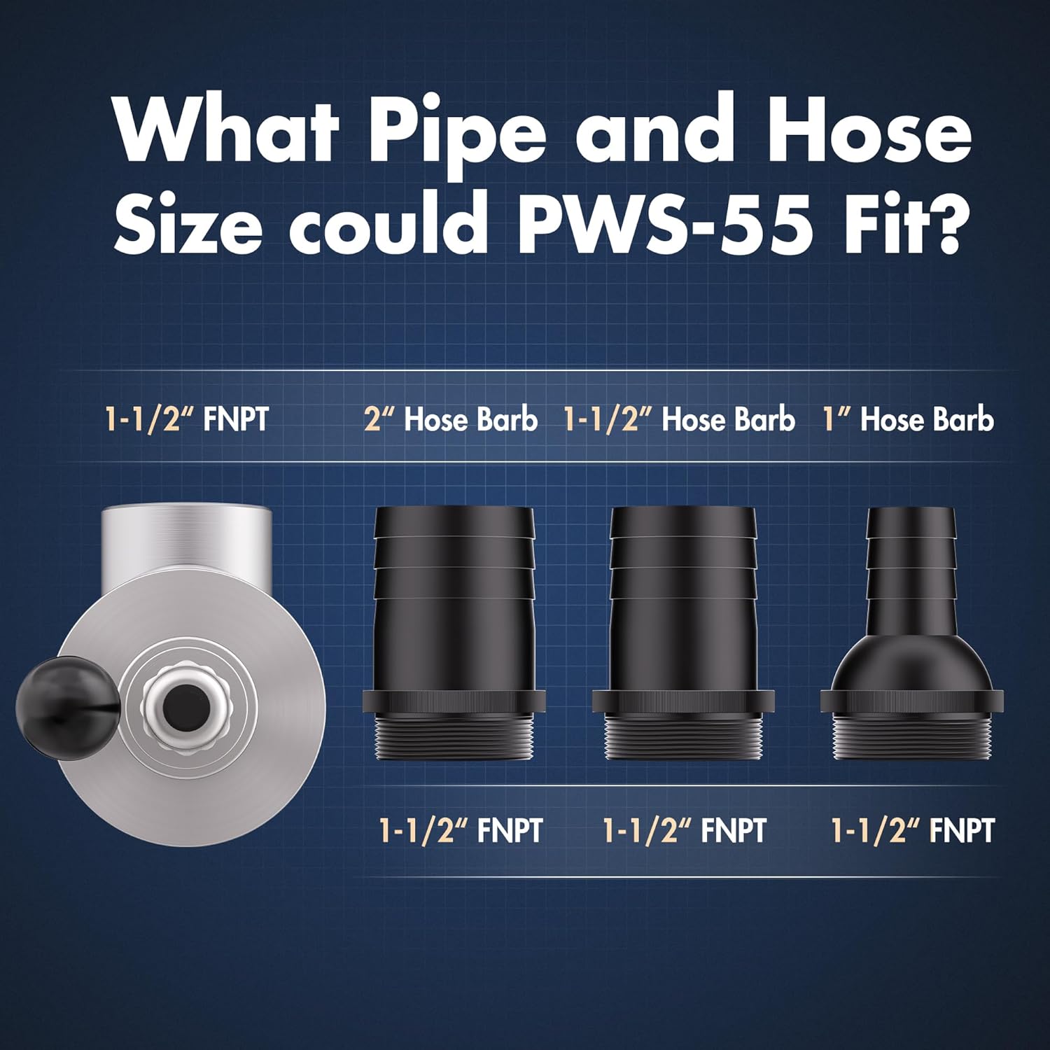HQUA PWS-55 55W Pond Pool UV Purifier Clarifier, Weatherproof IP67, Stainless Steel UV Reactor, Pond Size Up to 8000 Gallons, Max Flow Rate 2700 GPH