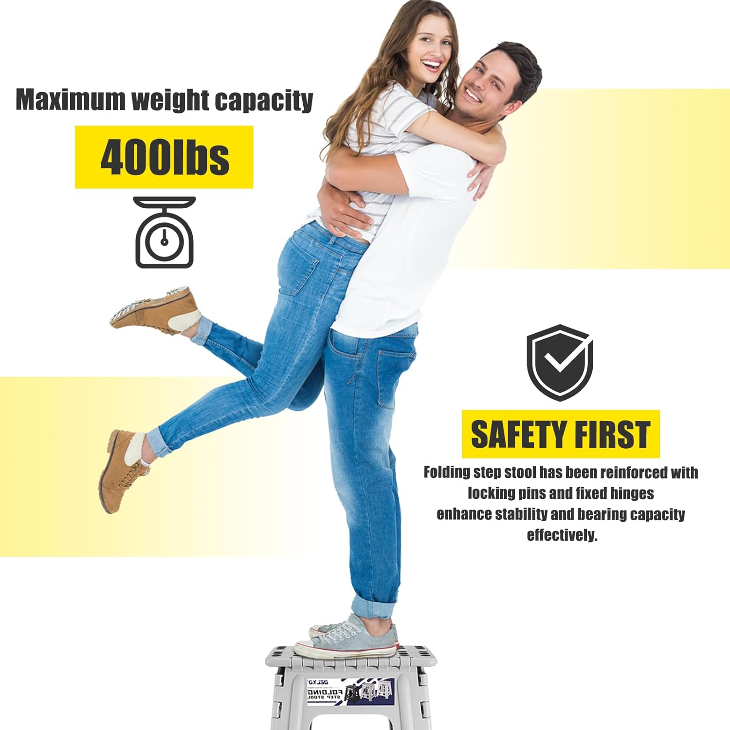 Delxo Folding Step Stool 17.5 Inch,Heavy Duty Step Stools for Adults,Non Slip Folding Stool with Handle,Premium Portable Foldable Step Stool for Kitchen Bathroom Bedroom Up to 400LBS,(Grey,1PC)