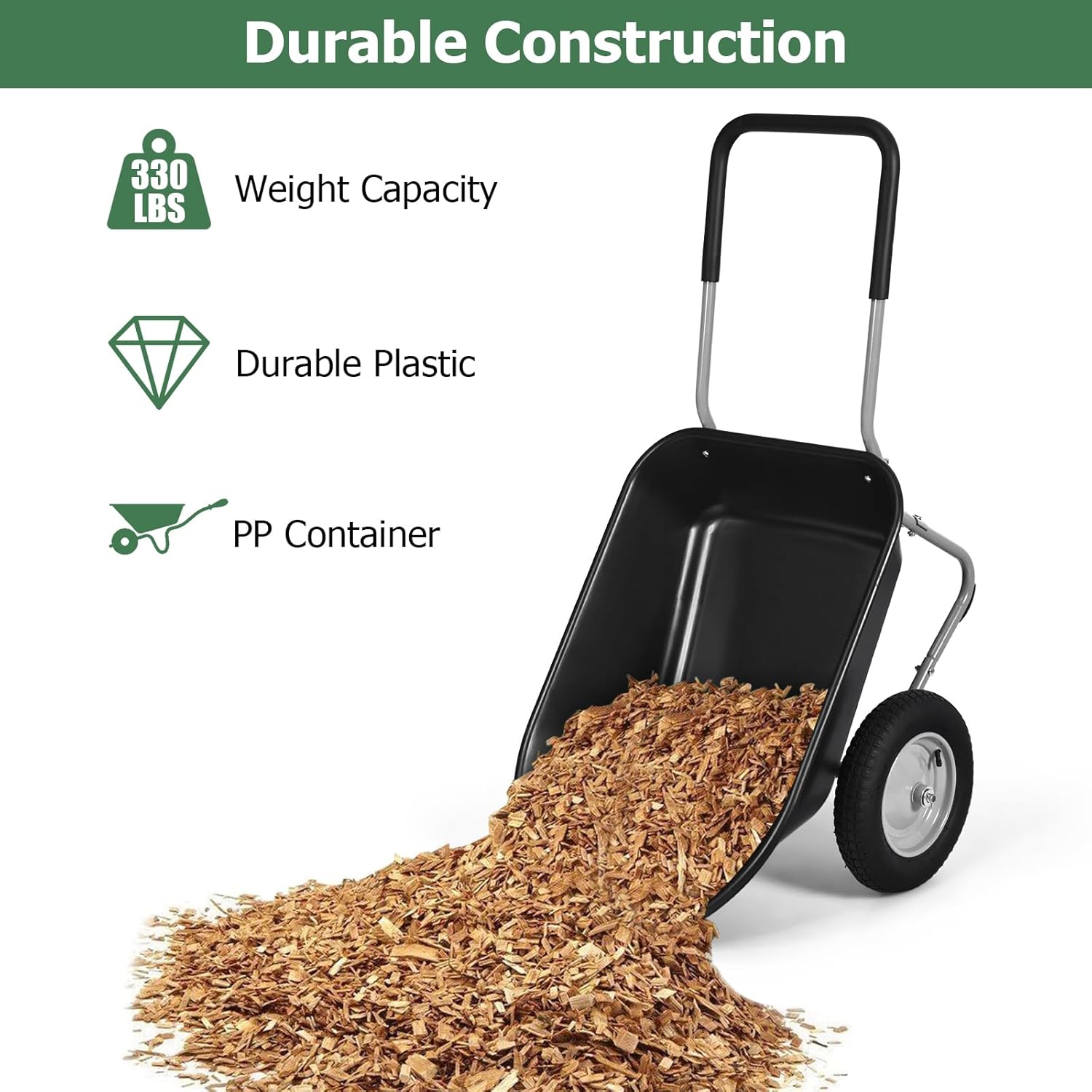 ERGOMASTER Dual-Wheel Wheelbarrow, Home Utility Garden Cart, 330 LBS Capacity, Large Heavy Duty Yard Cart for Gardening & Planting, Lawn, Farm, Construction Site, Black