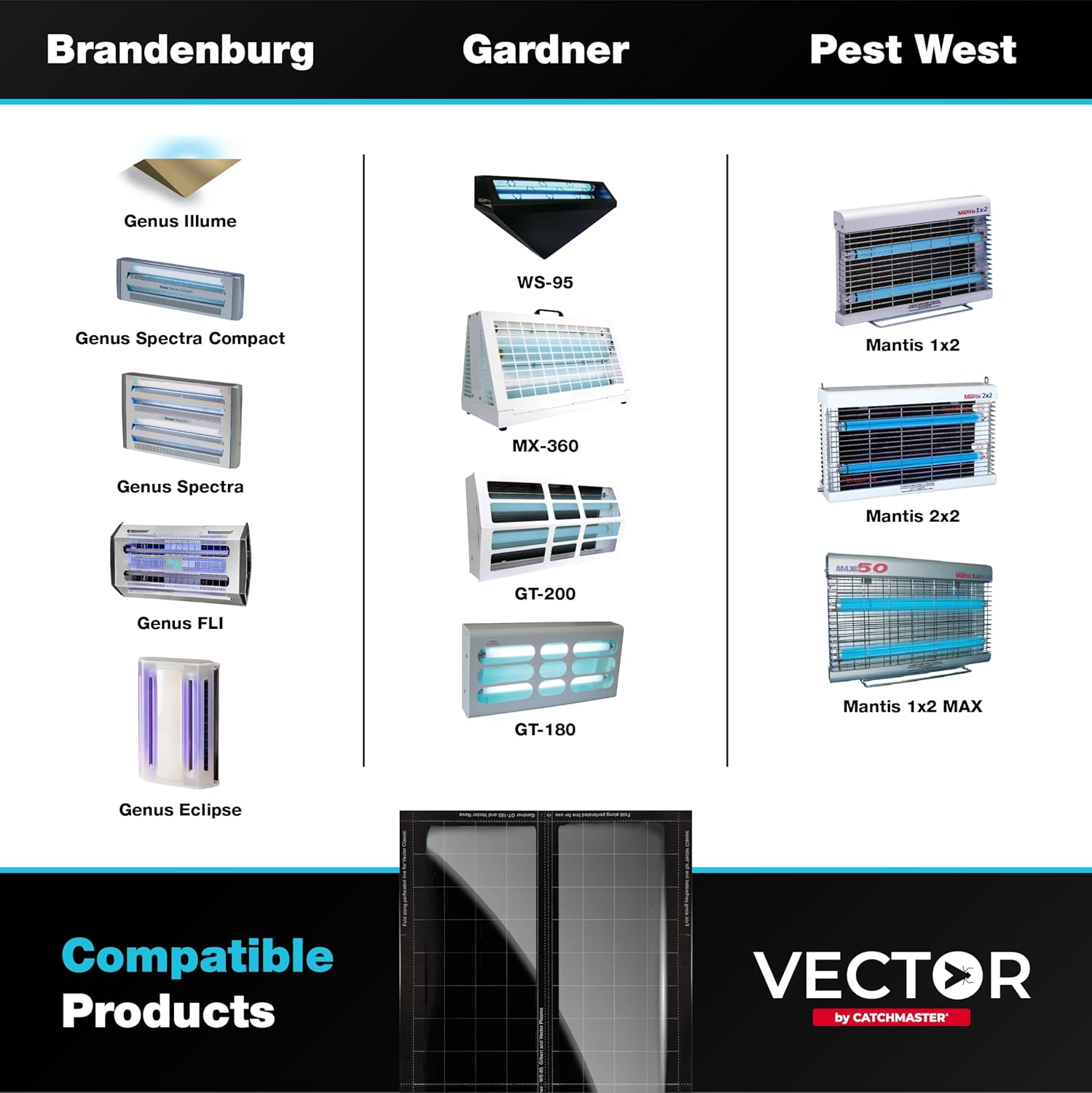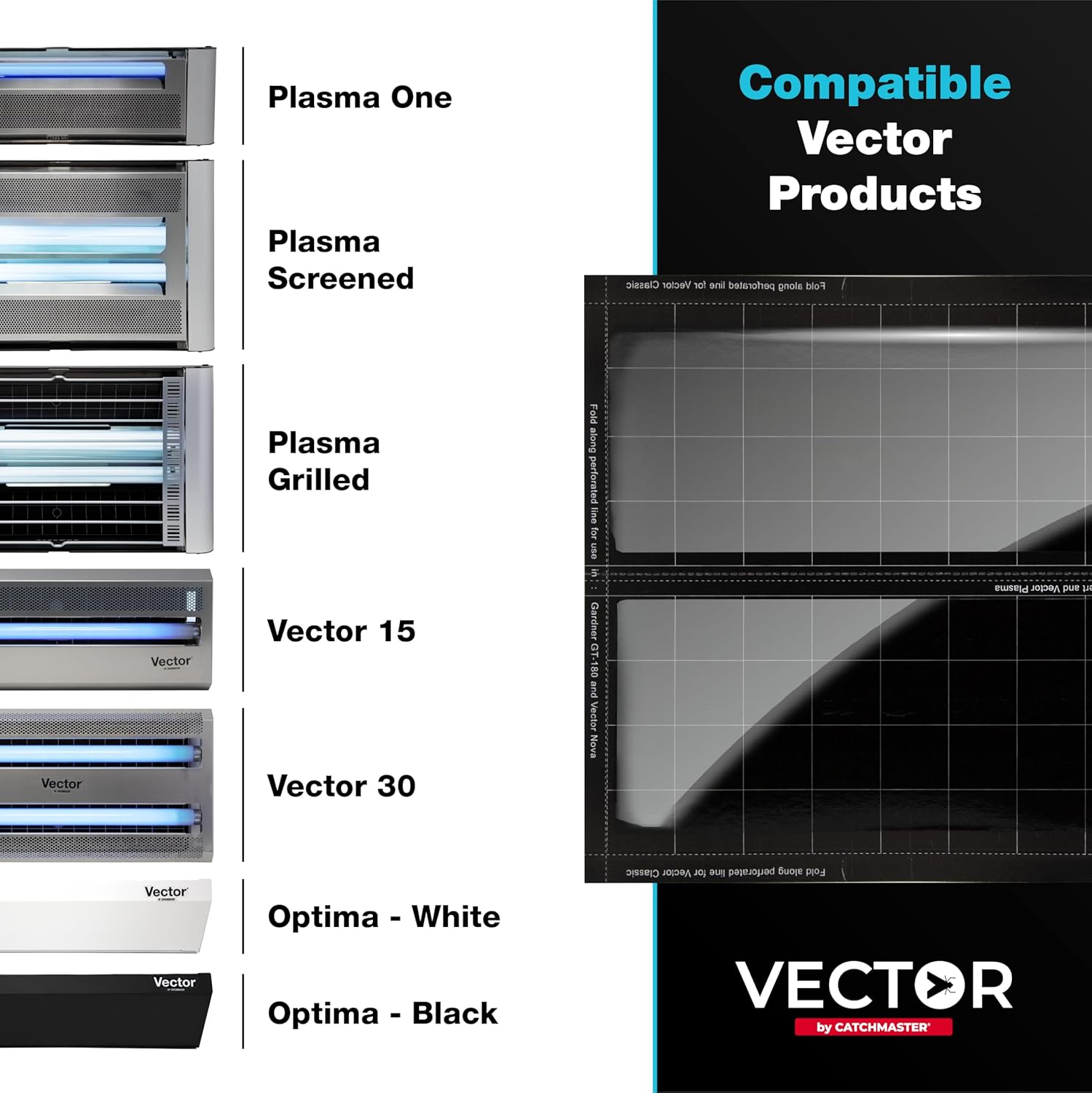 - GLUE BOARD REFILLS FOR UV TRAP: This set includes 12 replacement glue boards with perforations to create 24 glue boards compatible with Vector Fly Light Traps, including the Vector Classic, Vector Plasma Grill, Vector Plasma Screened, Vector Plasma One, Vector 15, Vector 30, and Vector Optima. The Vector Light Traps are sold separately.