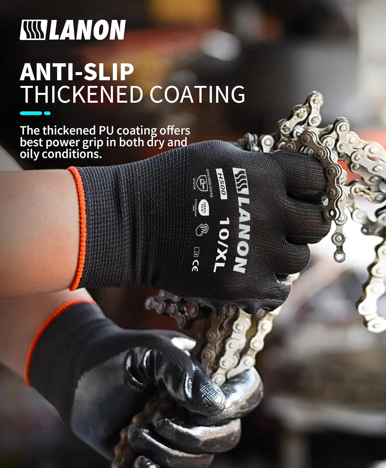 - Next-level Performance - LANON work gloves are certificated by CE, with Standards EN 388:2016, EN 420, and meet CA Prop.65 regulations for phthalates. We guarantee your 100% satisfaction with our products. If you are not satisfied with our products, please feel free to contact us and we will provide free returns or size exchanges.