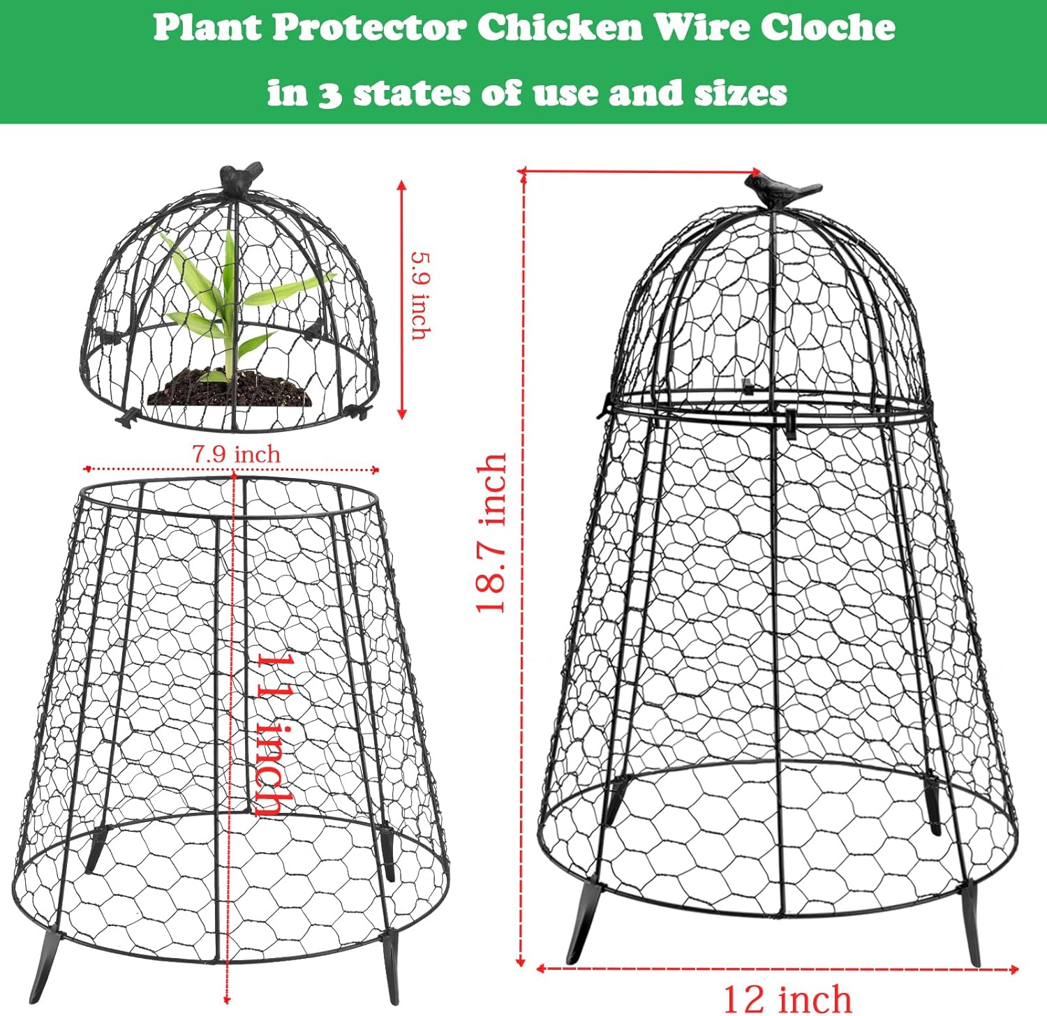 - 【Method of Use 1】Cloche Dome for Plants: 7.9 in (W) x 5.9 in (H) chicken wire cloche on top can be used during the plant seedling stage, not only can protect plants from animals, but also chicken wire cloche with a Chicken wire cloche with a hummingbird handle on top, perfect for decorating your garden.