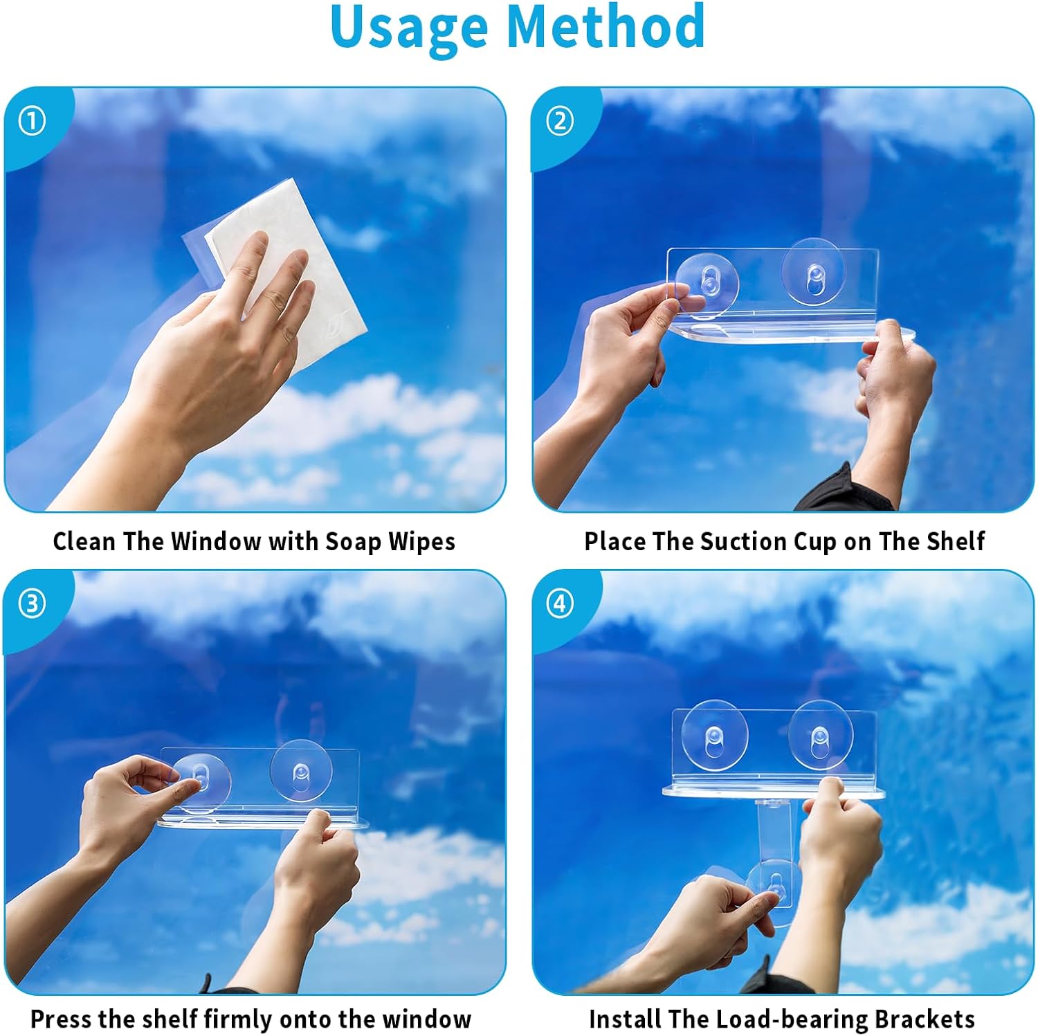 - MORE STRONG CONSTRUCTIONïŒOur window plant shelf is made of 5mm thick, high-quality transparent acrylic and minimalist design, keep your window view while safely fixing objects. And each of our window sill suction cup planters comes with a load bearing bracket for greater support and stability