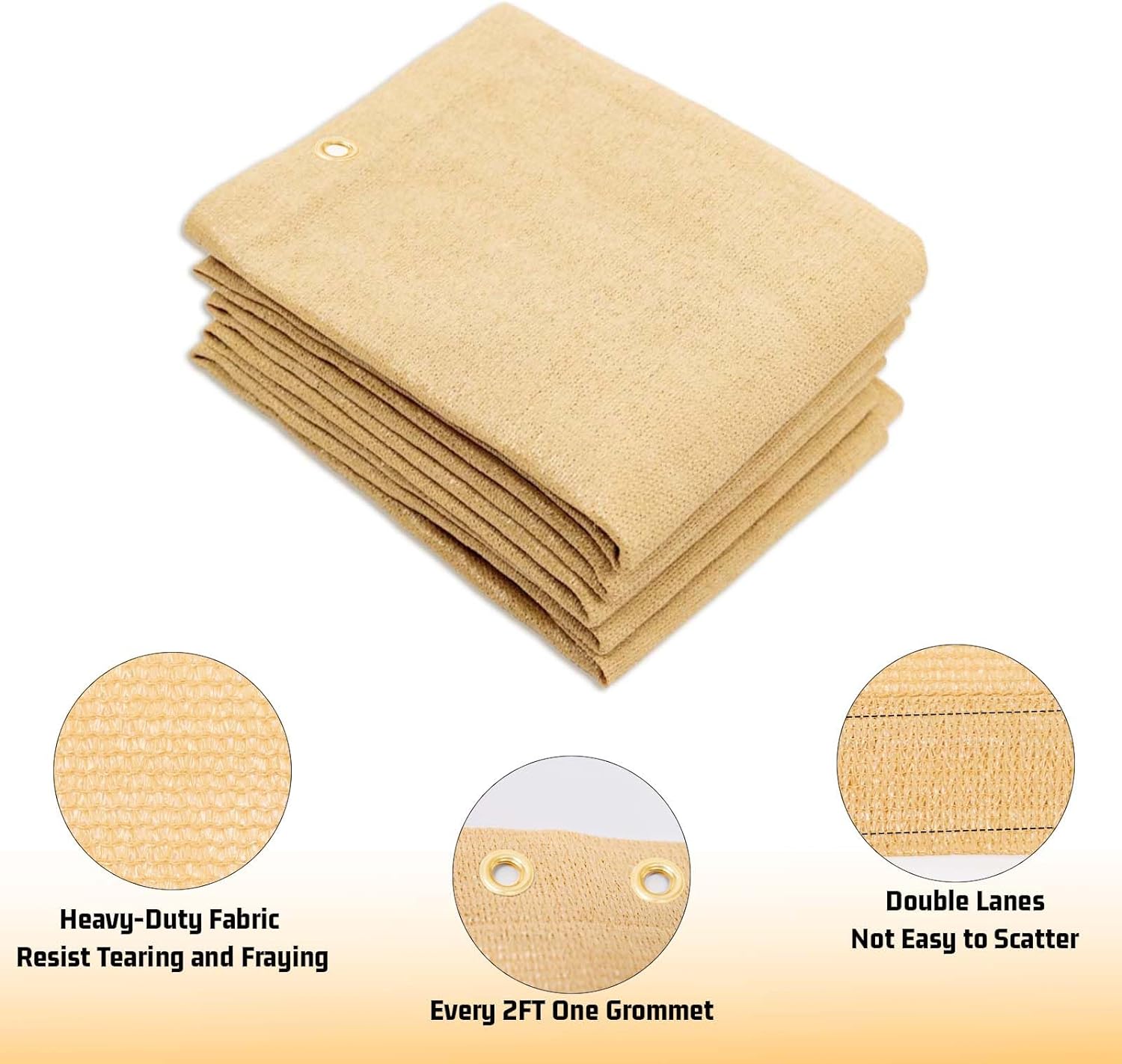 SUNNY GUARD Shade Cloth 4/6/8/10/12 FT Sun Shade Screen Fabric Shade Cover Tarp with Grommets for Pergola Backyard Garden, Sand