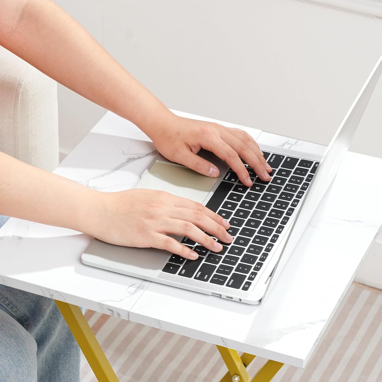 HOOBRO Folding TV Tray Table, Wooden TV Tray, Portable Sofa Side Snack Table, Industrial Desk for Small Spaces, Space-Saving, Easy to Install and Fold, Marble and Gold DM27BZ01
