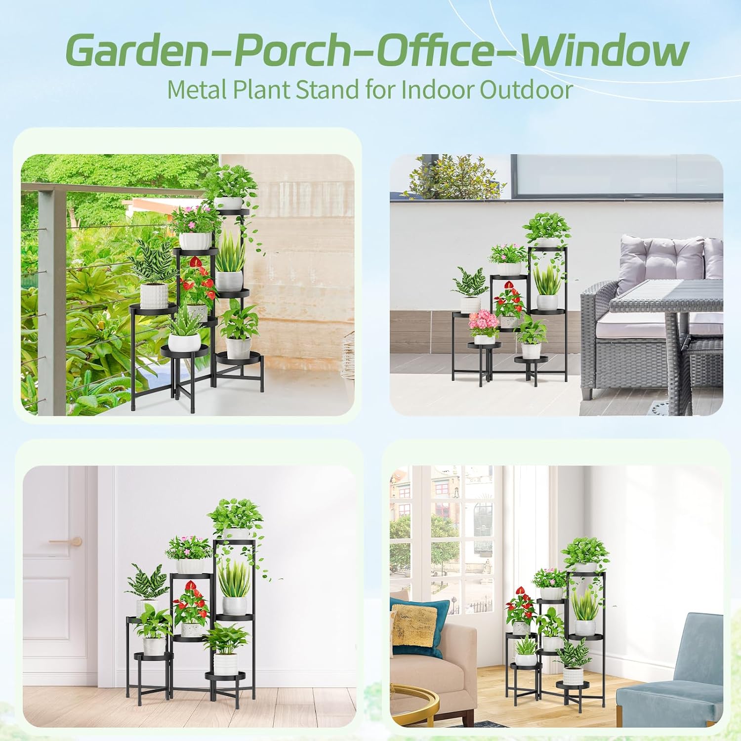 - Waterproof Rust-Resistant Coating: The corner plant stand is finished with a protective baking paint that resists water and rust, so it works well both indoors and outdoors. Ideal for patio, porch, or balcony, it stays looking good and lasting longer