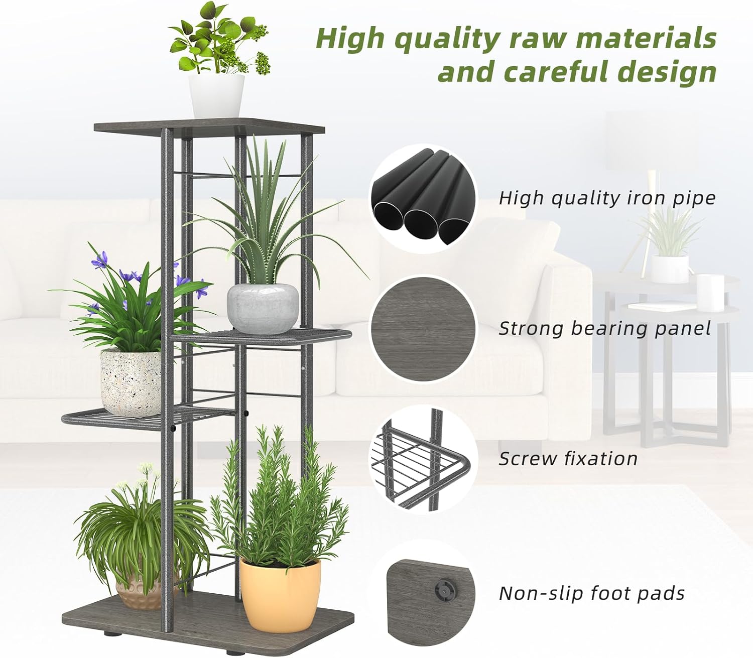 Simple Trending Plant Stand Shelf Indoor Outdoor Waterproof, 4-Tier 5 Potted Heavy Duty Metal Tall Flower Holder for Multiple Corner Display