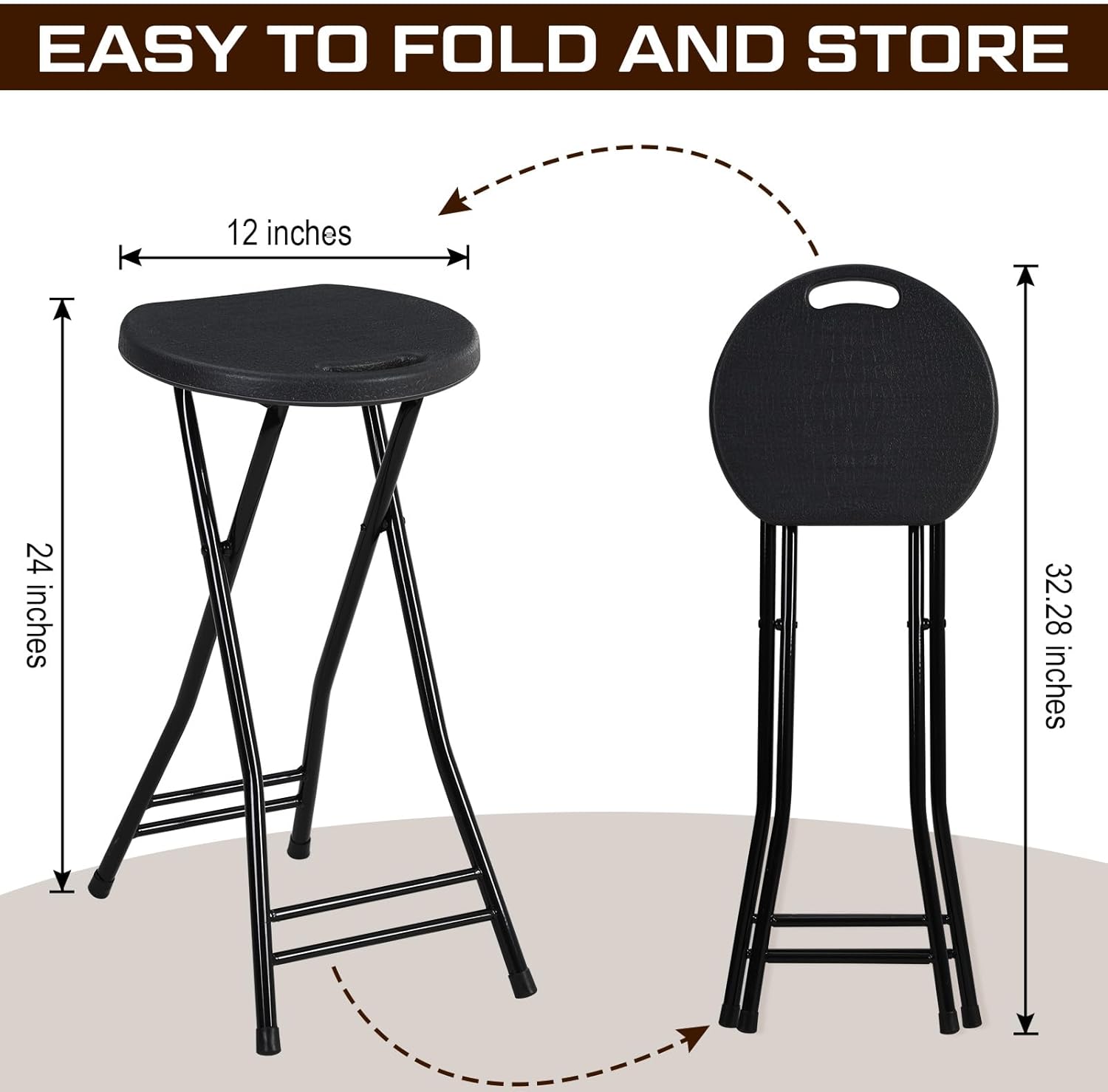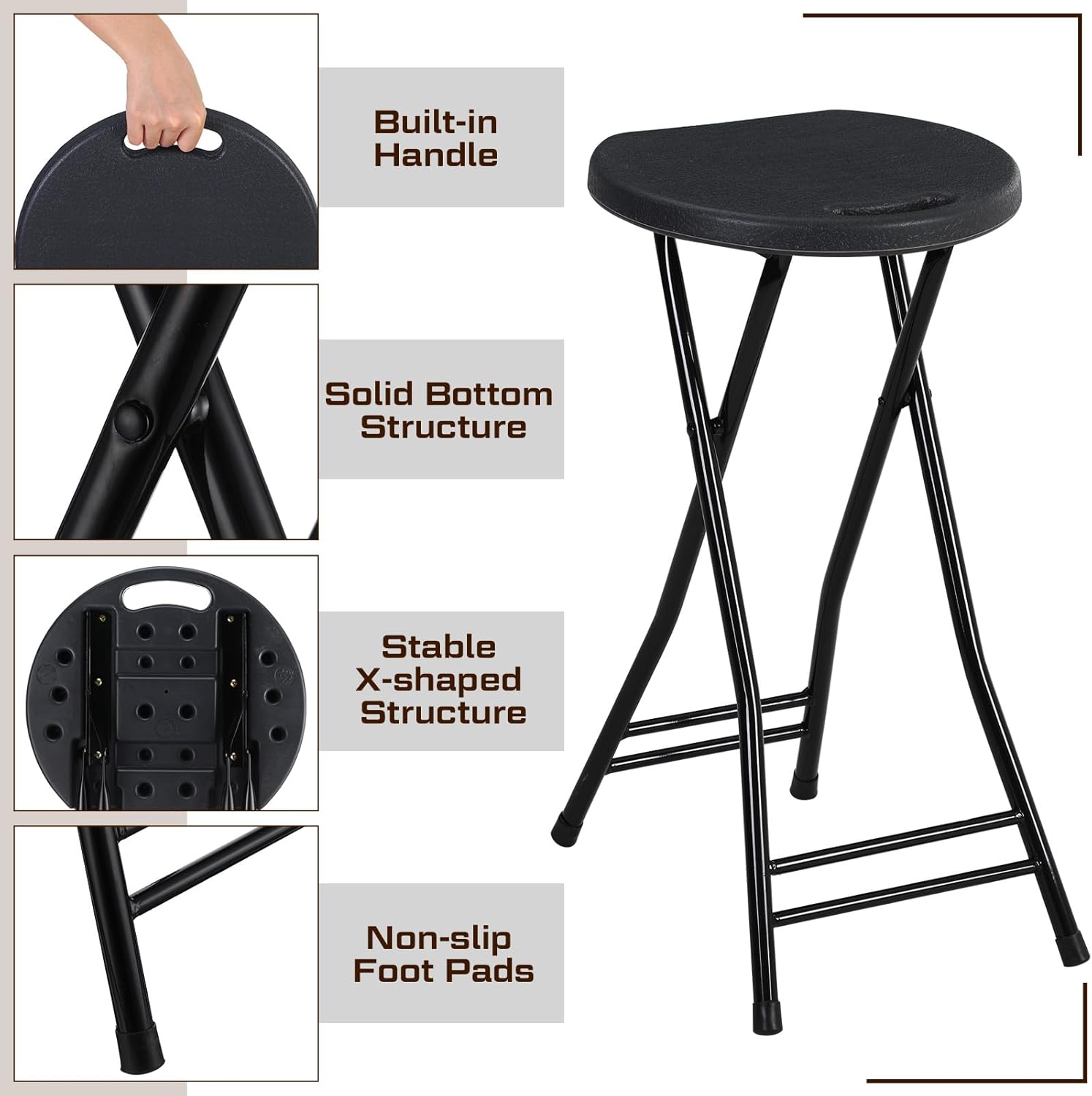 Suzile 2 Pcs 24 Inch Tall Folding Chair Portable Plastic Stool Chair Heavy Duty Foldable Bar Stools with Handle for Adults Kitchen Counter Room Home Camping Indoor Outdoor, 300lbs Capacity (Black)