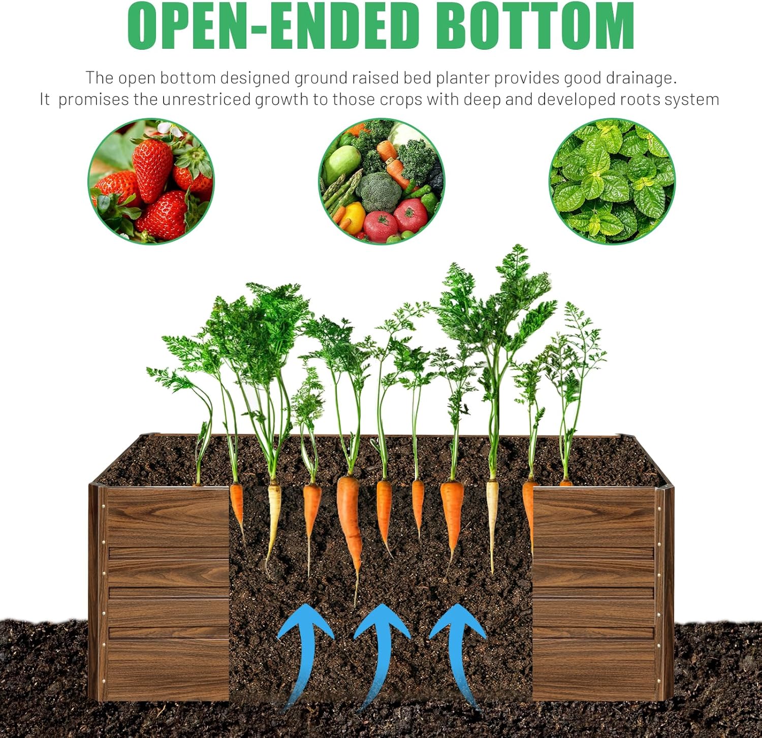 - OPEN BOTTOM: The open bottom designed ground raised bed planter provides good drainage. What's more, it also promises the unrestriced growth to those crops with deep and developed roots system, allow roots to better absorb nutrients.