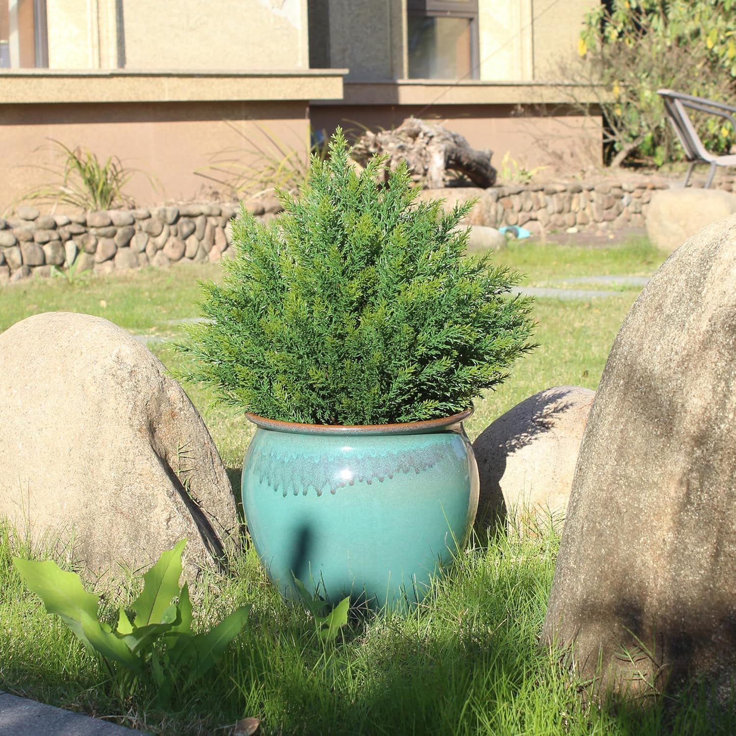 - ăDurable UV ProtectionăThis artificial cedar potted plant has the function of ultraviolet protection, and its shape is vivid. It is also cold resistant, and evergreen all the year round. You can plant it in your garden, office, bedroom, and living room. It can also be given as a gift.