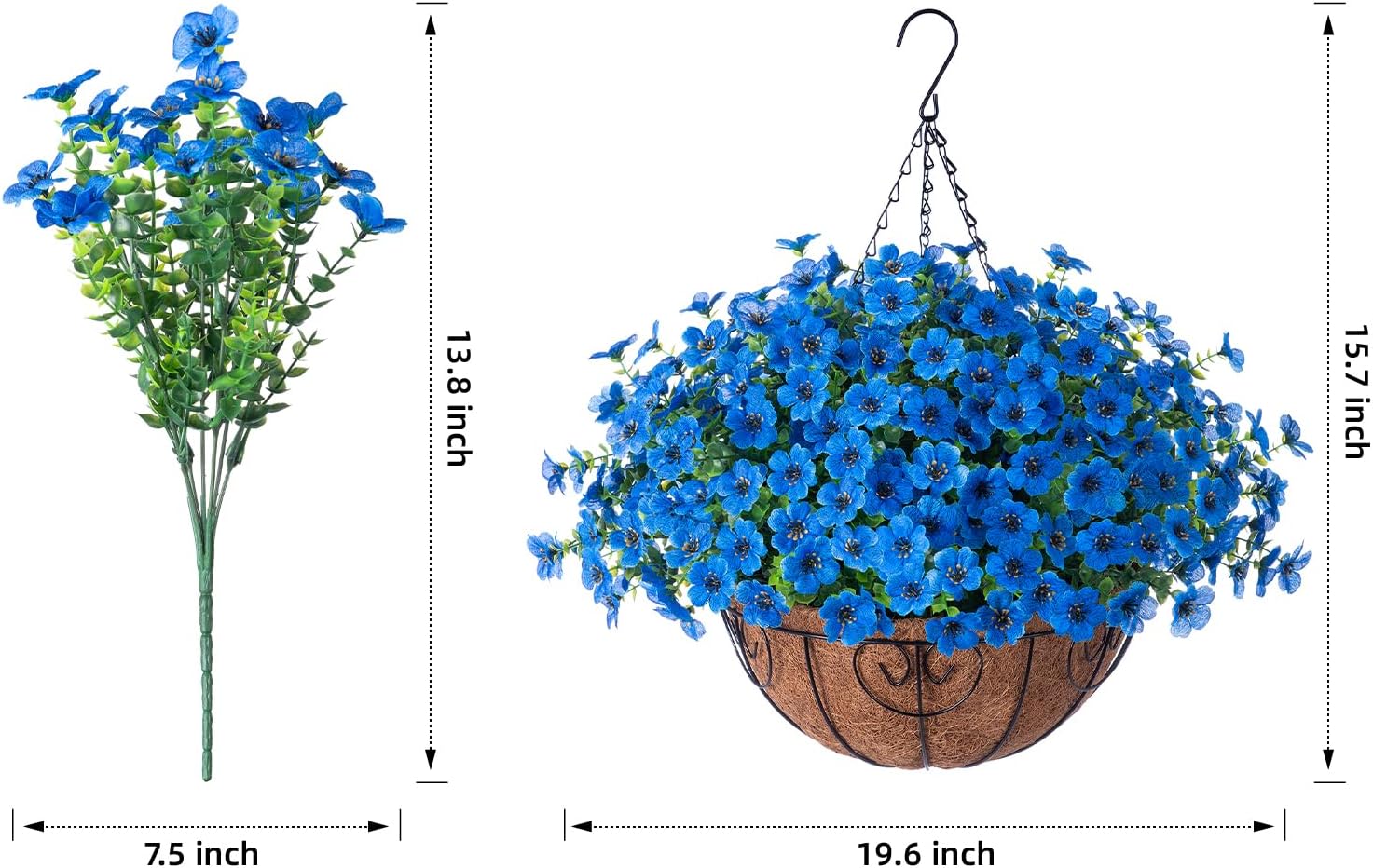 - GOOD QUALITY: The hanging basket and artificial daisy flowers with eucalyptus leaves were made of good quality material that don’t require maintenance after assembly. It’s UV resistance and won’t fade, sturdy enough for any weather. No watering needs. It looks full and beautiful all season.