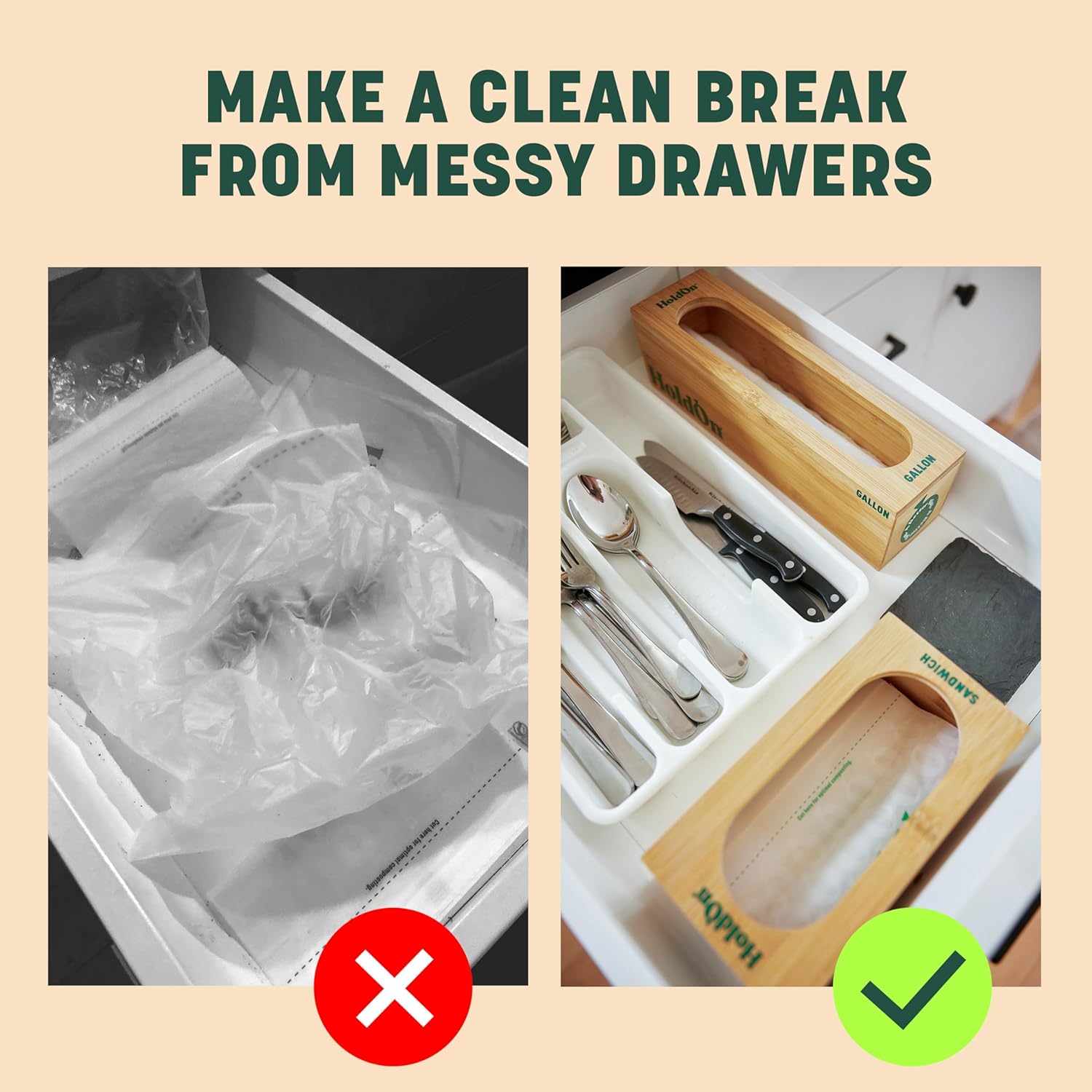 HoldOn Bamboo Gallon Bag Holder - Bamboo, Simple, Individual Organizer, Extra Thick - Food Storage Bag Holder, Space Saving, Renewable Material, Clutter Free