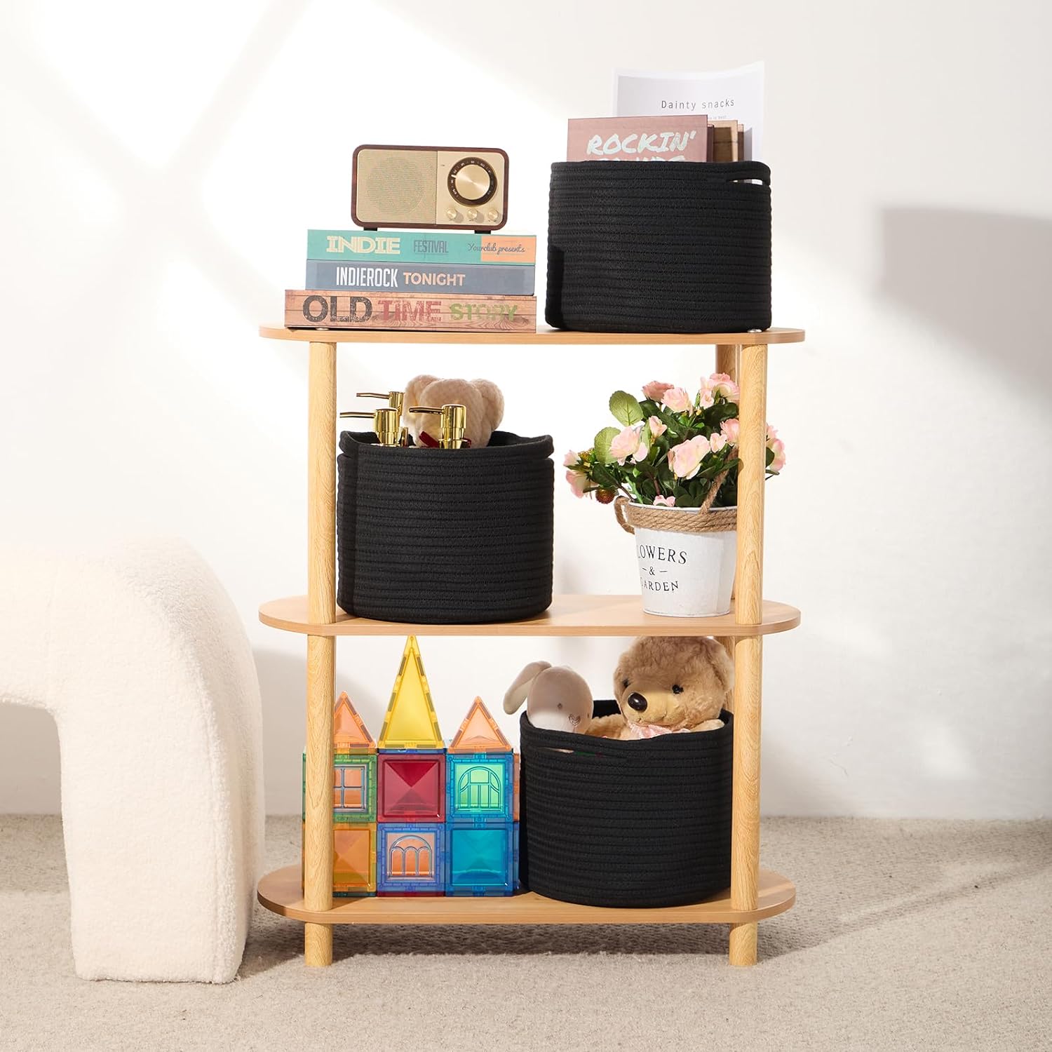 Small Basket for Organizing | Cube Shelf Closet Storage Baskets | 9.7×9.7×7.1” | Woven Rope Gift Basket | Nursery | Round 3 Packs Black