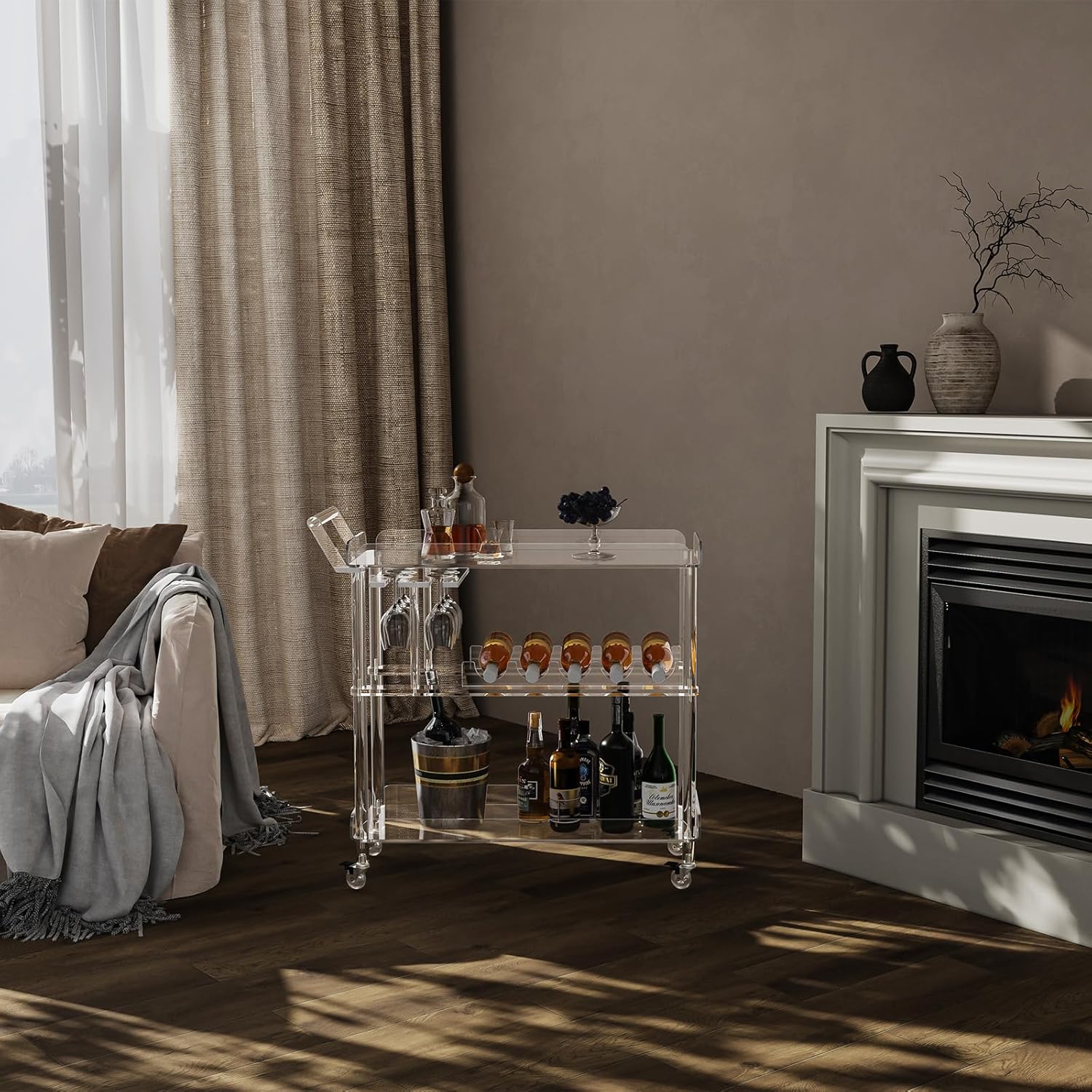 - Modern Design: This acrylic cart stands out with its modern and sophisticated design. Its transparent acrylic material gives it a unique sense of fashion, effortlessly blending with various decor styles.