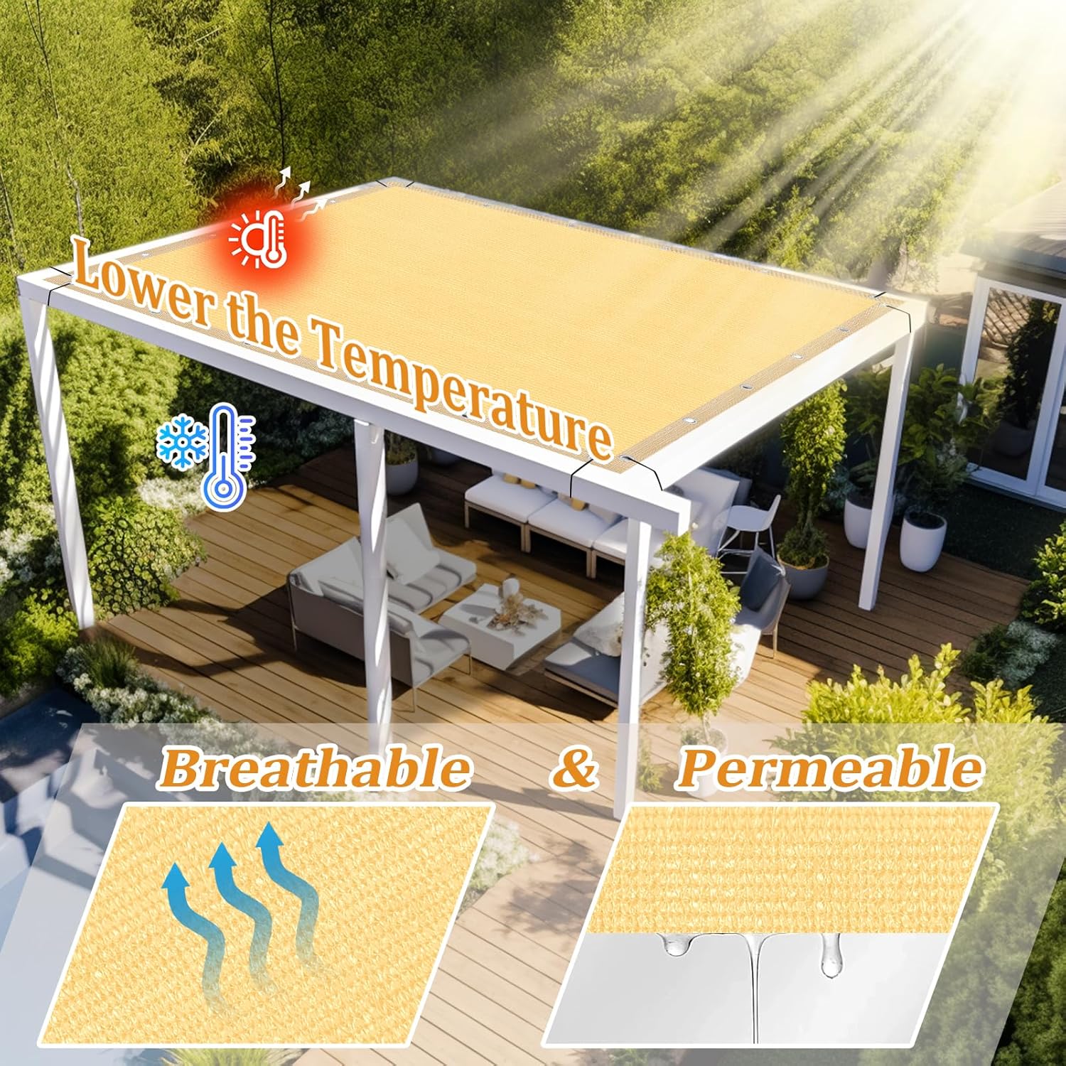 - [Durable Fabric] Shade&Beyond shade fabric is built to last. The breathable weave prevents water from pooling, rain is less likely to soak in and cause material damage, and dries quickly, making it ideal for long-term outdoor use. For assistance, please do not hesitate to tell us
