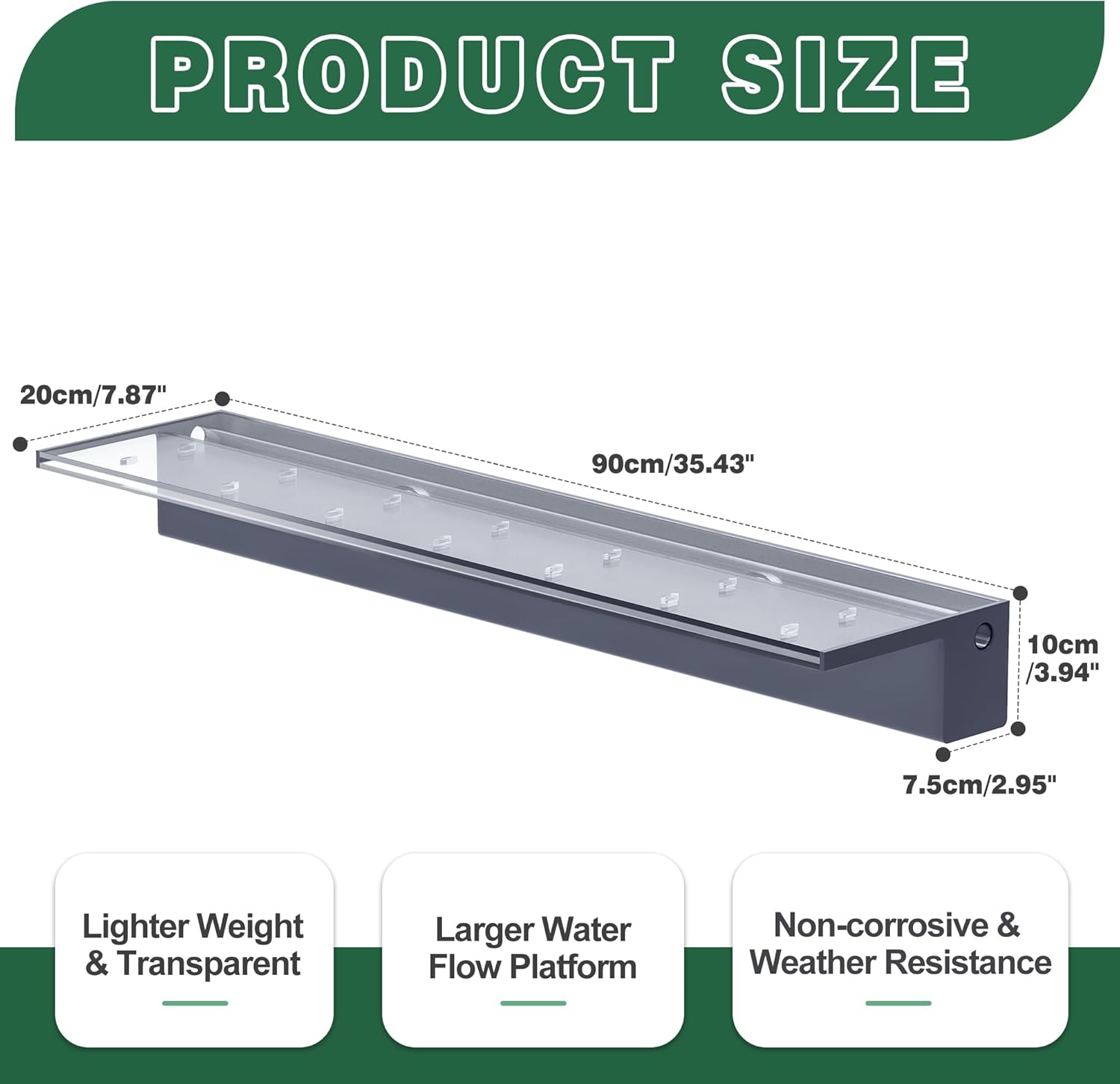 - ăSpillway Waterfallă- The main body of this spillway waterfall is clear acrylic for stable long-term use, featuring an top open lip design that creates elegant, invigorating, freefalling water effects to add a decorative touch to ponds and pools, letting you enjoy the relaxing sounds of water for a sense of calm and well-being. LED light strips not included, but available separately.