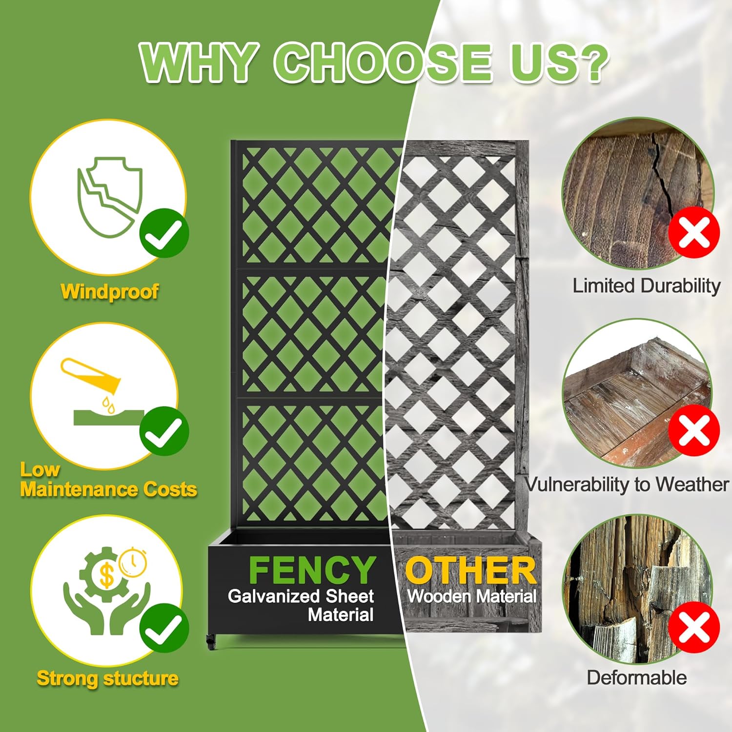 - 【Space-Saving Design】The combination of the planter box and trellis saves space while offering an attractive garden bed. This space-efficient solution is ideal for gardening enthusiasts facing space constraints, allowing them to cultivate beautiful gardens even in limited areas.