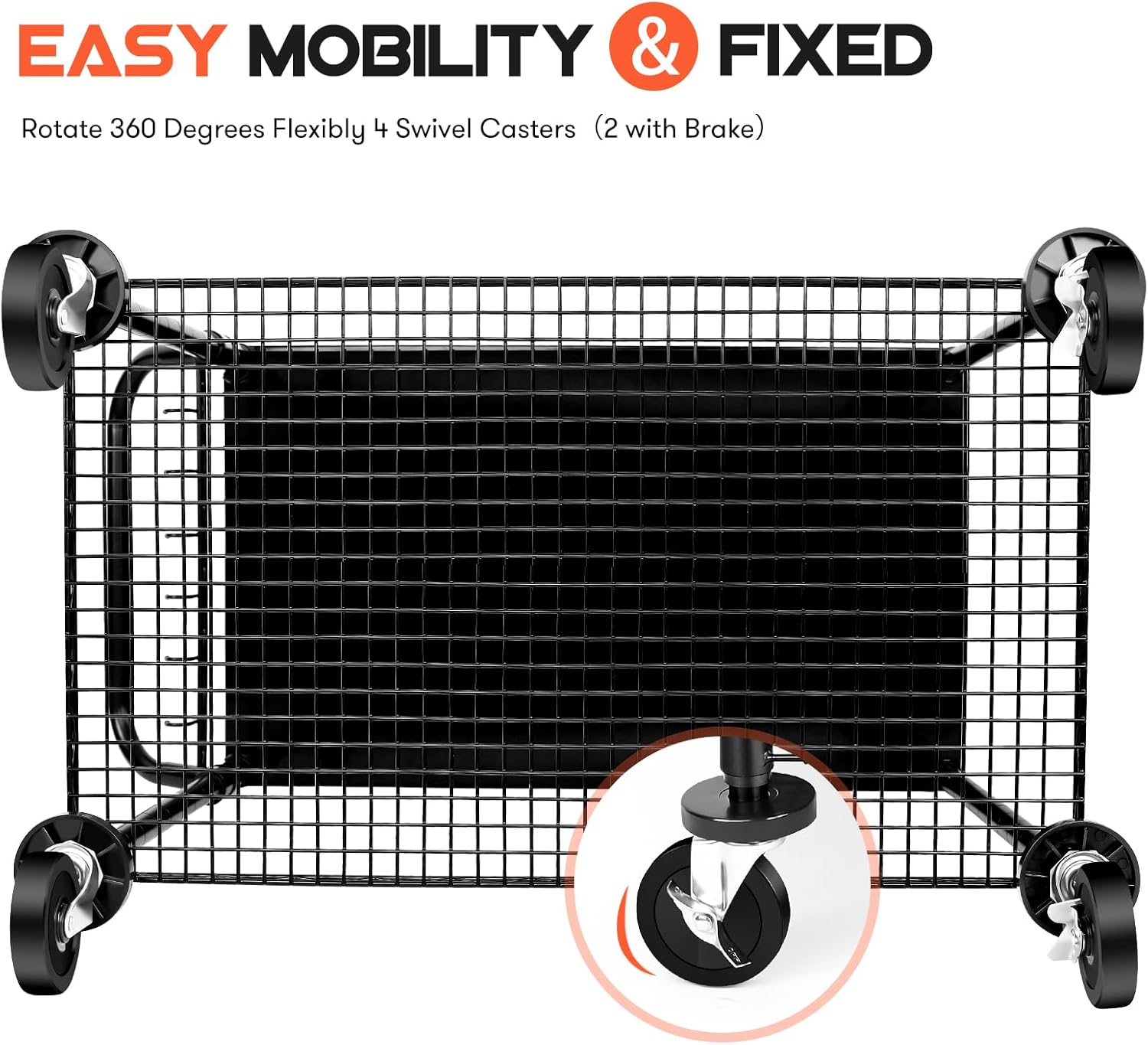 - 360° Silent Casters: The 2 tier rolling storage cart is designed with 4 silent casters; it transports heavy loads swiftly and smoothly. include 2 fixed locks wheels can hold the wire utility cart firmly in place for added stability.