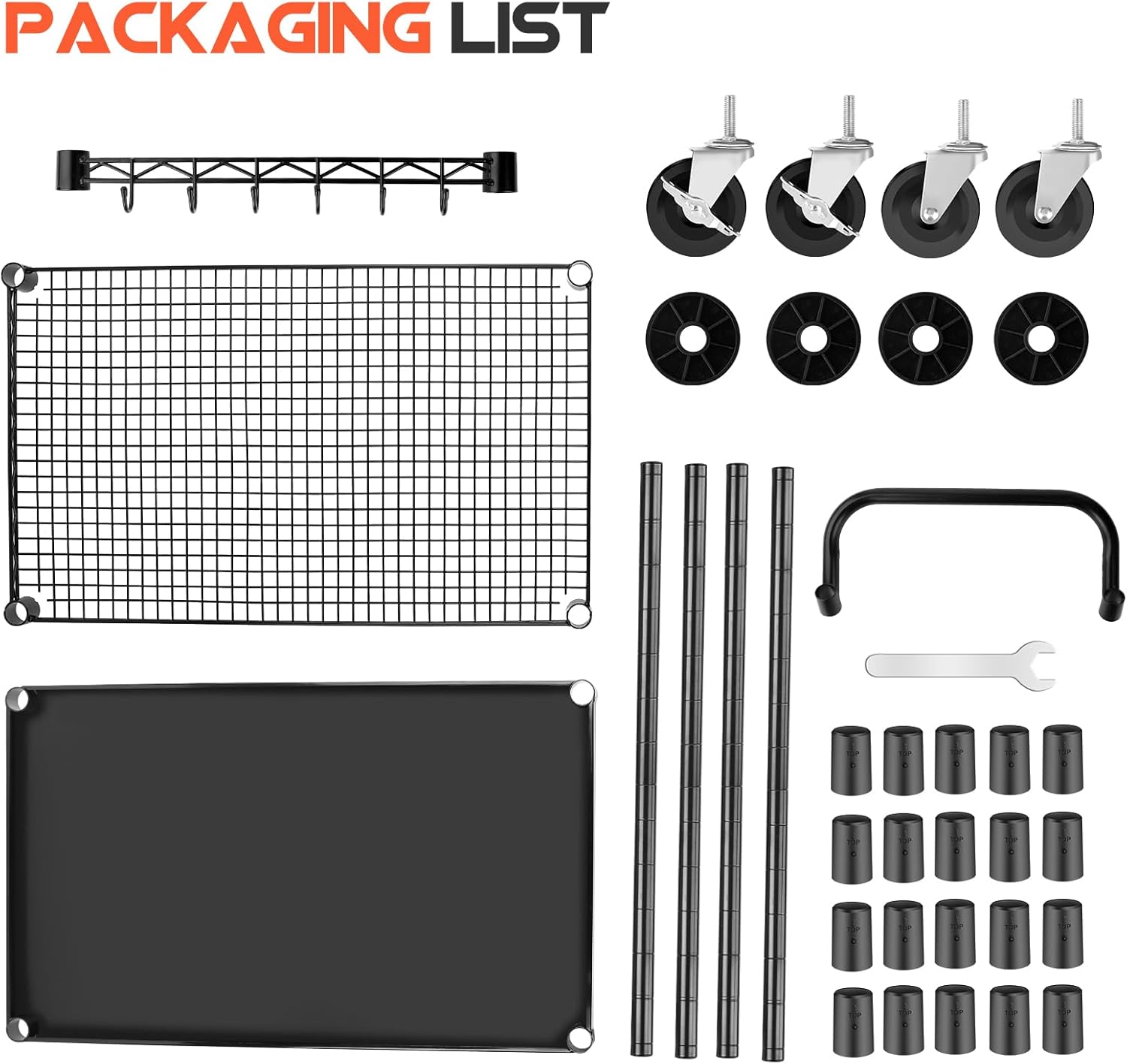 - Humanization Design: This mobile cart comes with a convenient handle push-bar, a ventilated basket, 2pcs Shelving Liners and 6 hooks. The shelves can be adjusted at 1-inch intervals for your needs.