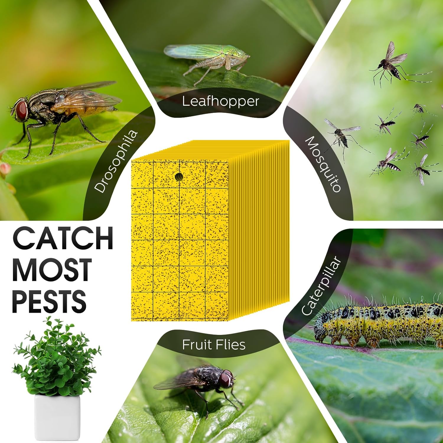 - Double Sided Design: the sticky traps for bugs is available on both sides, UV resistant, waterproof and heat resistant, and can be applied in all seasons to keep you and your family away from harmful insects white fly sticky traps