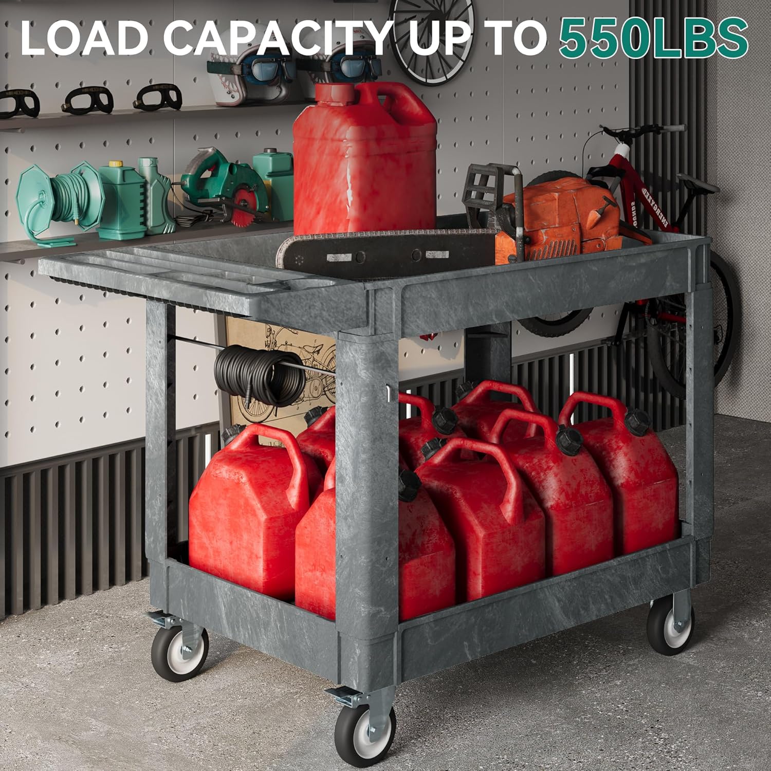 - 3-STEPS INSTALLATION: The package comes with professional installation instructions, you don't have to worry about the installation at all.Utility carts with wheels size description: 45x25x33.3 inches, Load Capacity: 550 lbs, Number of Layers: 2 layers. With this extra large heavy duty work cart, you can store more and push it easily.