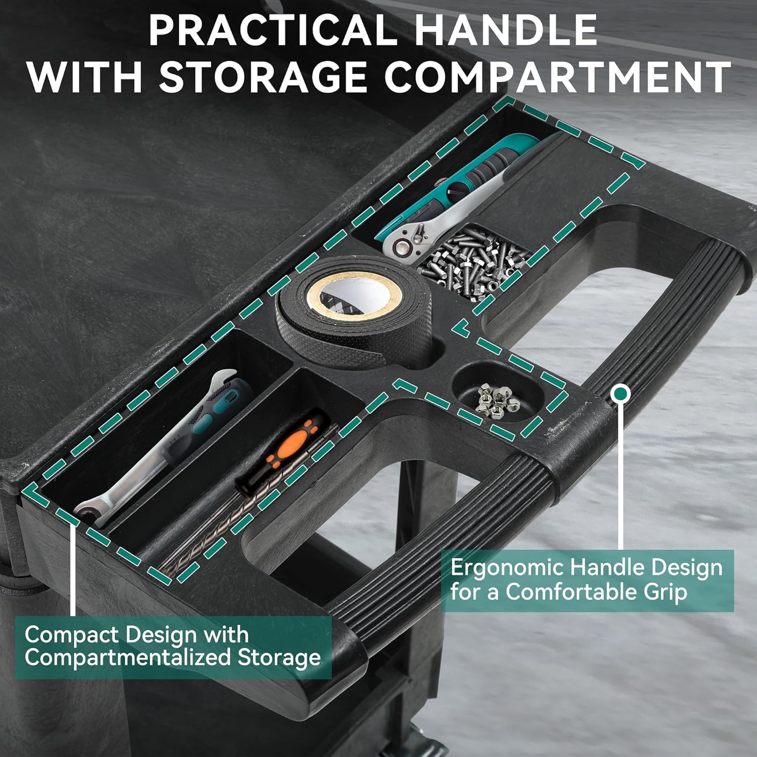 YITAHOME Utility Cart on Wheels, Plastic Tool Cart 550 lbs Capacity Service Cart, 40 x 17 Inch 2 Shelf Extra Heavy Duty Rolling Work Carts for Warehouse, Garage, School & Office, Cleaning, Black