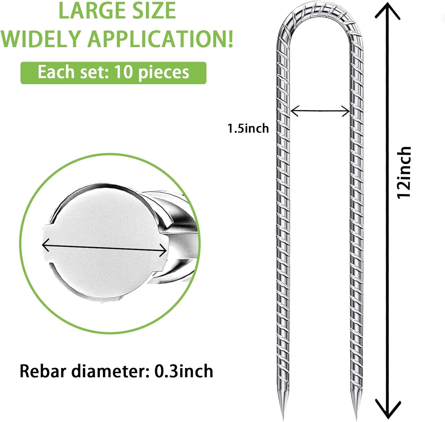 Rebar-Stakes-12-Inch-U-Shaped, Ground Stakes Heavy Duty for High Winds Galvanized Anti-Rust 10pcs Metal Stakes for Ground Heavy Duty Ground Anchors for Garden Dog Fence Chicken Coop Water Pipe