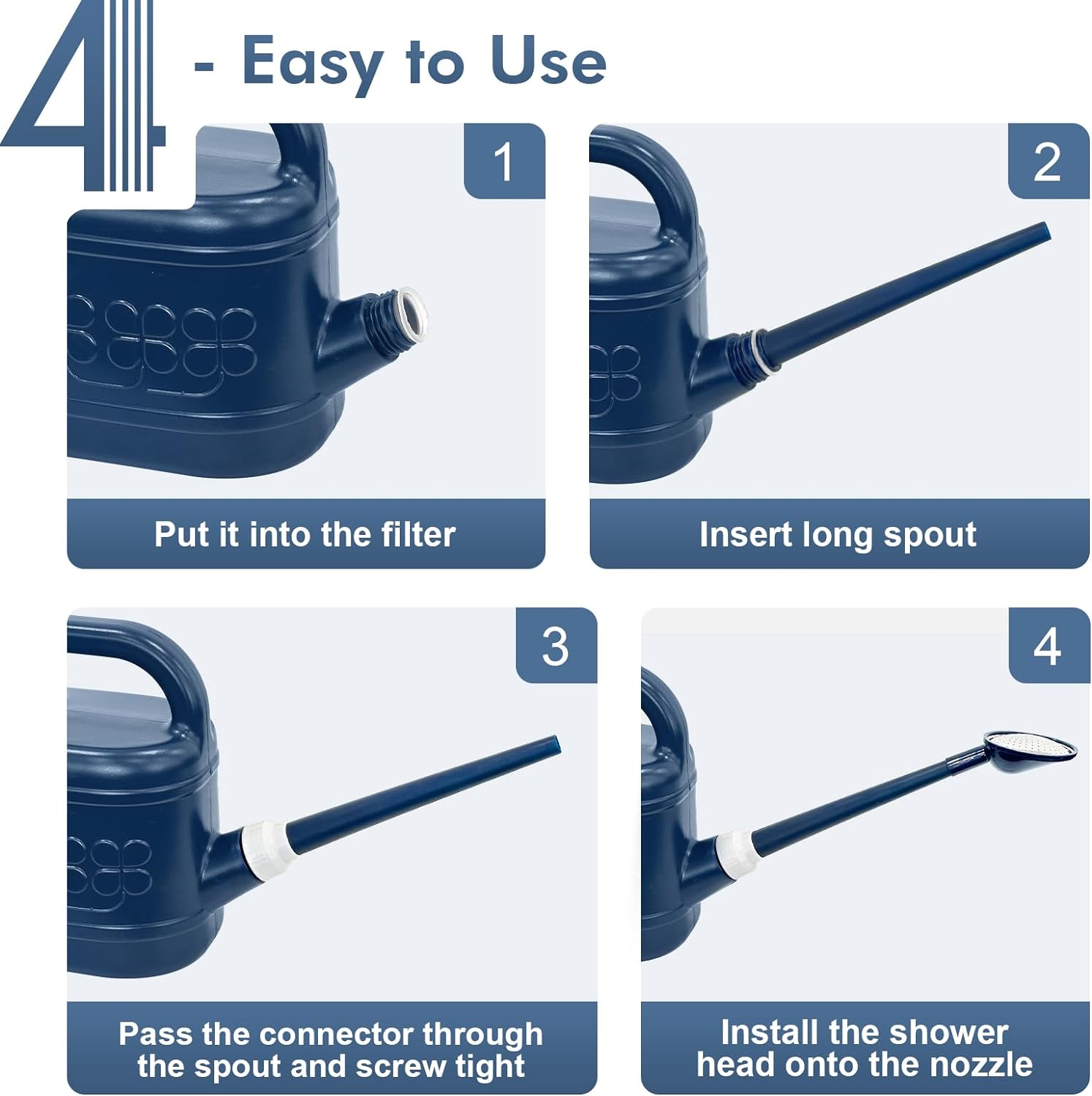 - [PRECISE WATERING, WATERING FLOWERS WITHOUT WORRY]-Plant watering can has a removable long spout, easy to carry and store, when installing, pass the connector through the spout and screw tight, seals well with no leak. Long spout watering can easy to reach distant plants, watering easily without bending over or tilting it too much, it easy to control the overall water flow, directing water exactly where it is needed, allowing every part of the plant to fully absorb the water.