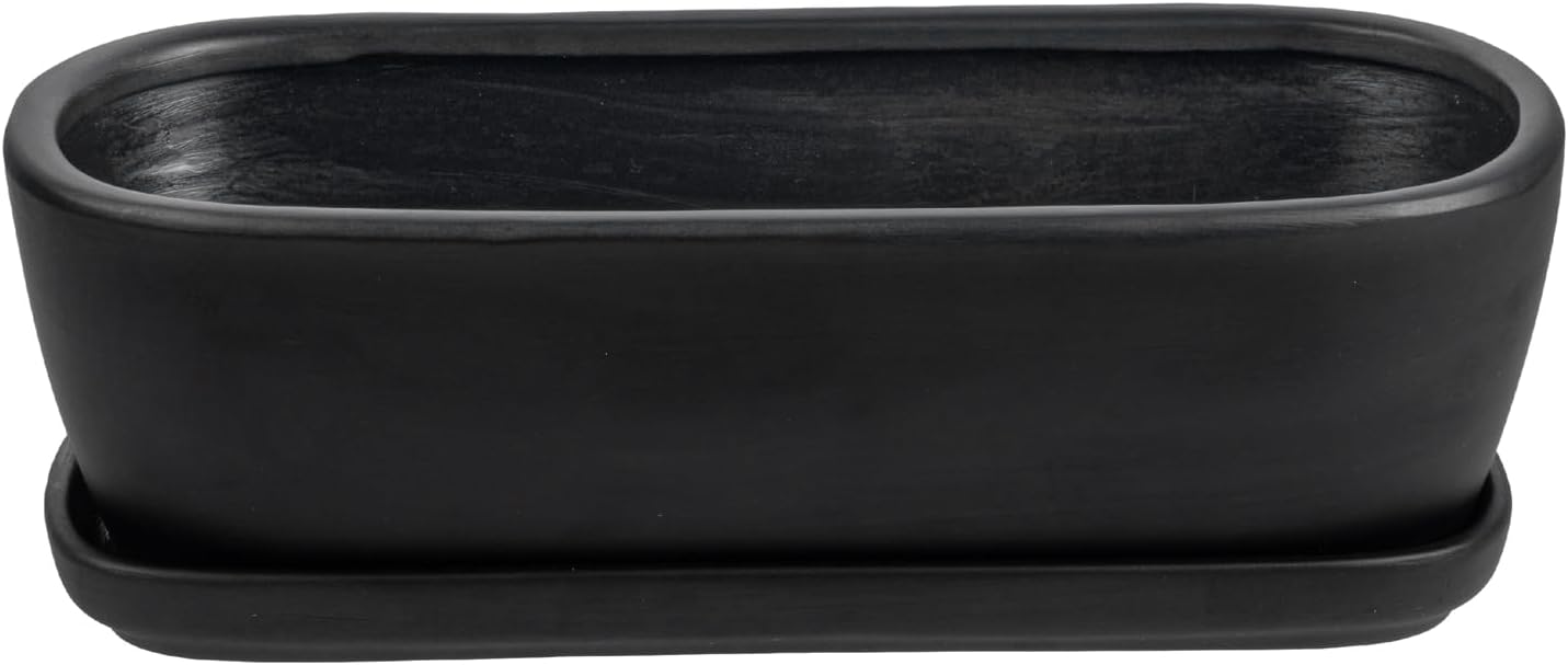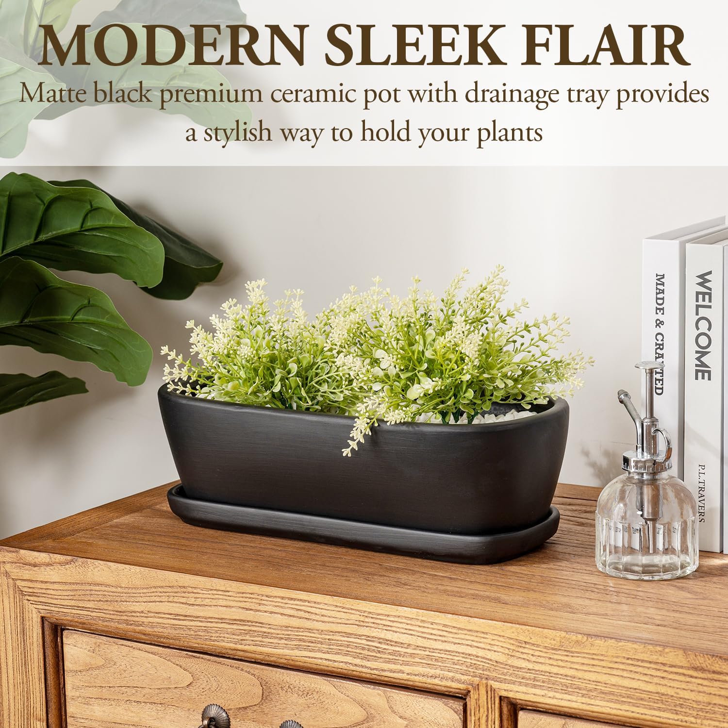 - Modern matte black ceramic rounded rectangular empty pot with removable saucer is suitable for most indoor plants in any home, office, or business **Plants NOT included**