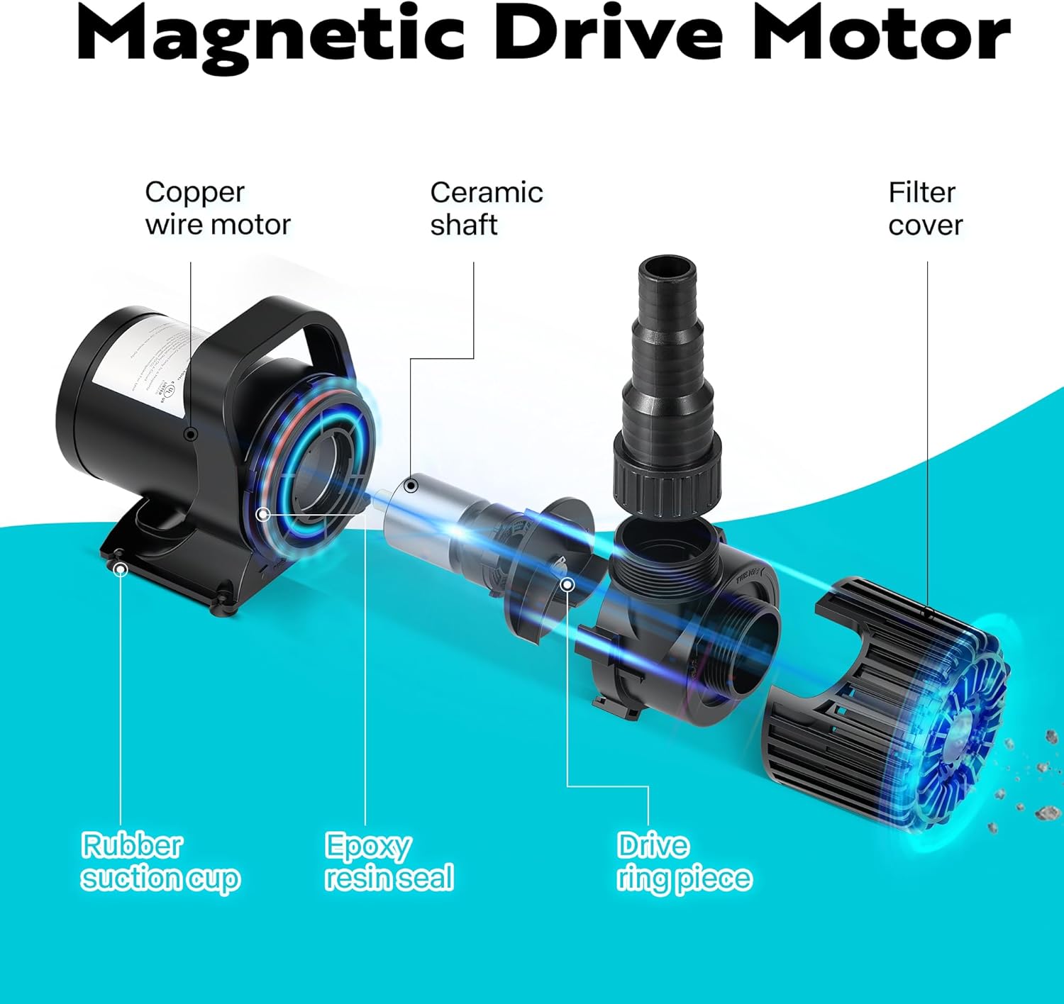 - QUALITY MATERIALS - The submersible water pump is constructed with premium ABS, featuring a ceramic motor shaft and silicon carbide drive ring piece to minimize wear and extend service life; The motor is sealed with epoxy resin, providing superior water resistance (IPX8) and insulation performance