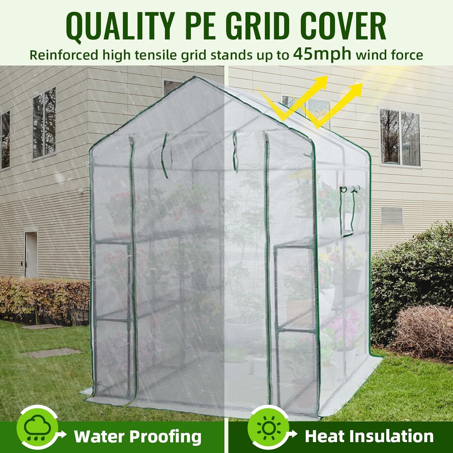 Greengro Greenhouse, 57 x 57 x 76'' Greenhouses for Outdoors, Portable Greenhouse Kit with Mesh Side Windows, PE Cover, 8 Shelves, Heavy Duty Walk in Green House for Backyard Garden Indoor Outside