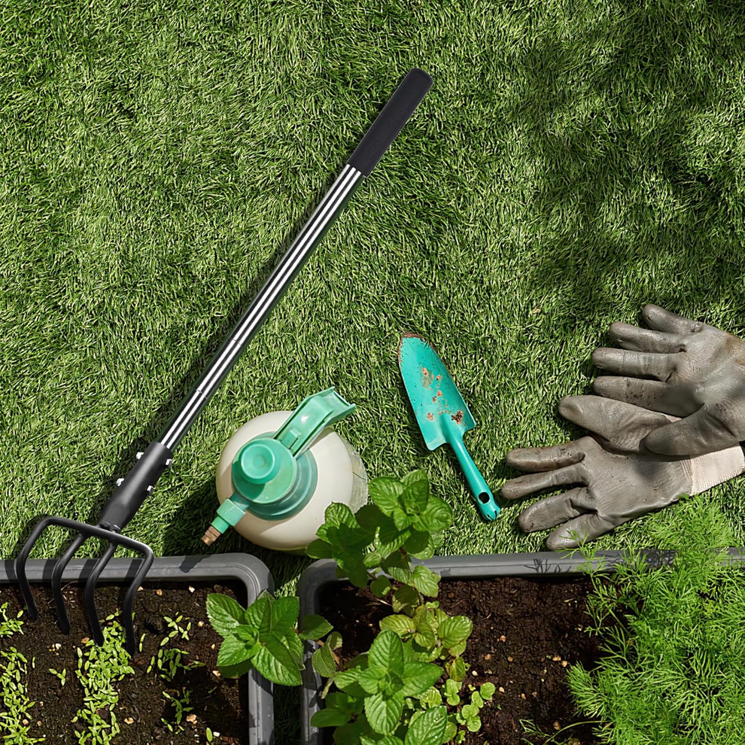 - [ Adjustable Design ] : Say goodbye to uncomfortable gardening experiences. Garden hand cultivator features a long handle that is adjustable and extendable, allowing you to customize its length to suit your preferences and needs. The soft padded grip at the end of the handle also provides a comfortable and secure hold.